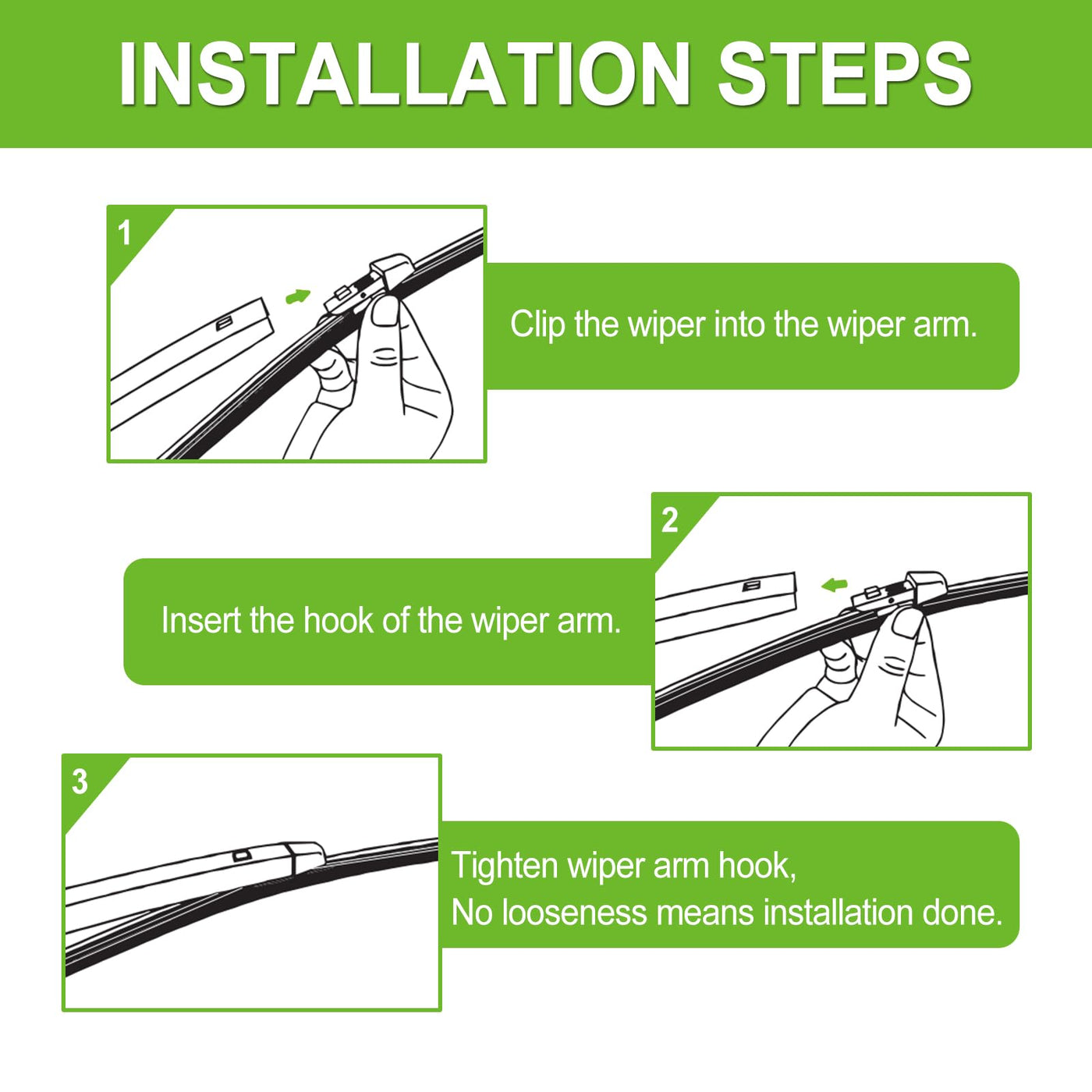 Q: How do I install the PARRATI® rear windshield wipers?A: Installation is straightforward and does not require awkward adapters. Simply follow the included instructions for a quick and noise-free setup.
