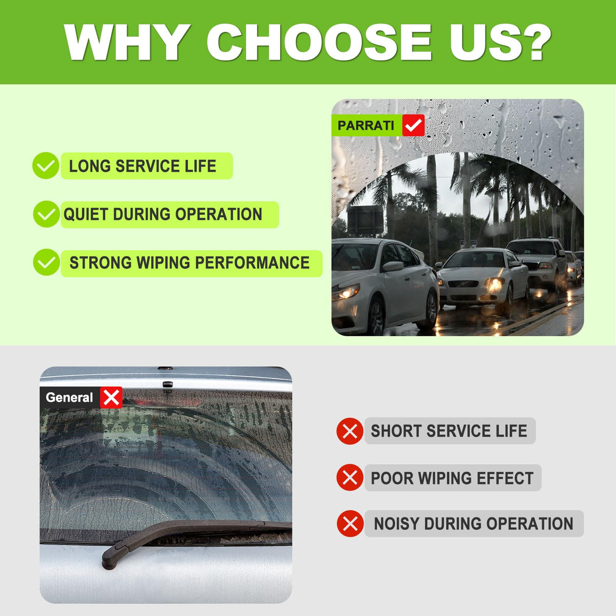 Q: Is there a warranty for the PARRATI® rear wiper blades?A: Yes, PARRATI offers a 1-year warranty on the rear wiper blades, along with 24-hour online customer service to address any issues.