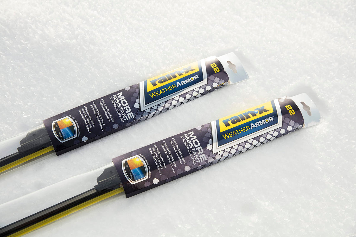 Q: What makes the Rain-X WeatherArmor wiper blades suitable for harsh weather conditions?A: The Rain-X WeatherArmor wiper blades feature an industrial-grade T24.7 synthetic rubber squeegee that is designed to resist harsh elements such as weather, ozone, and UV exposure, ensuring long-lasting performance and reduced streaking.