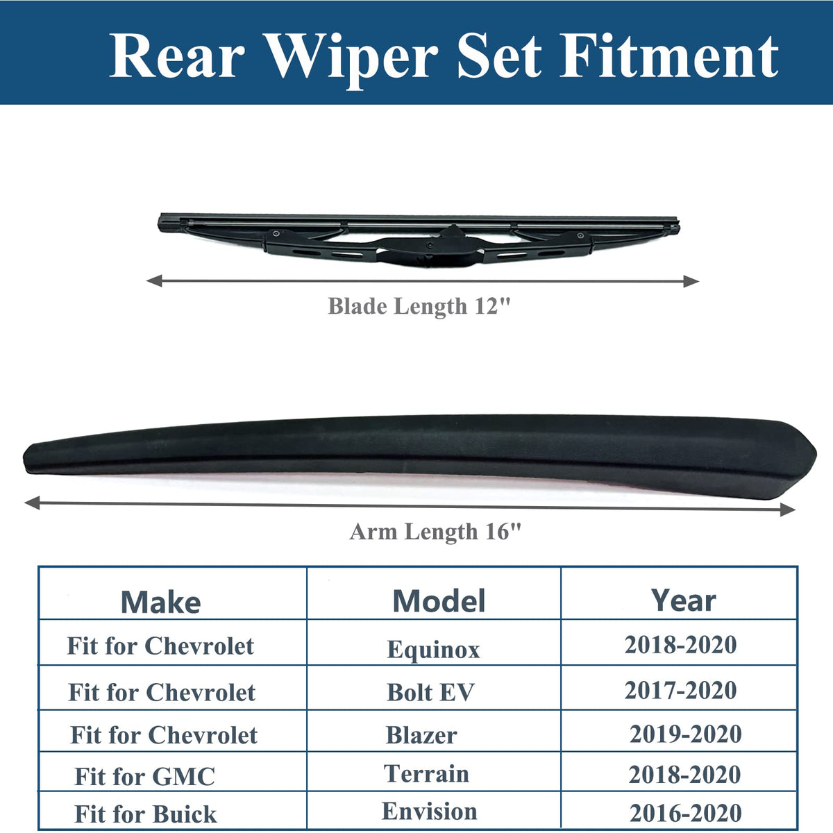 Rear Windshield Wiper Arm Blade Set For Chevy Equinox 2018-2020/ Gmc Terrain 2018-2020/Chevy Bolt Ev 2017-2020 Chevy Blazer 2019
