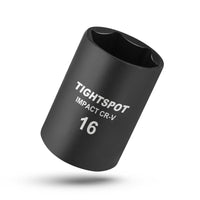 Q: Is the TIGHTSPOT Shallow Impact Socket compatible with standard impact wrenches?A: Yes, the 1/2" Drive 16mm TIGHTSPOT Shallow Impact Socket is compatible with standard 1/2" drive impact wrenches, making it versatile for various tasks.