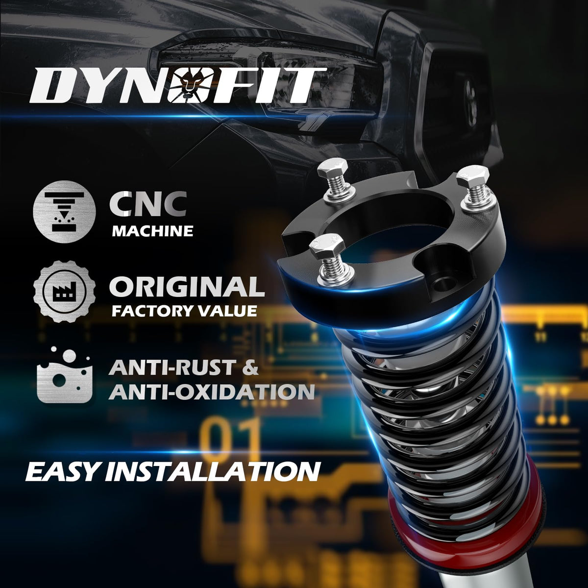 1.5 Front Leveling Lift Kits For 2005-2023 Tacoma, 2003-2023 4Runner, 2007-2015 Fj Curise 4Wd, Dynofit Raise 1.5 Inch Strut Spacer Suspension Lift Kit Lift Spacers, Set Of 2Pcs Shock Absorber Spacers