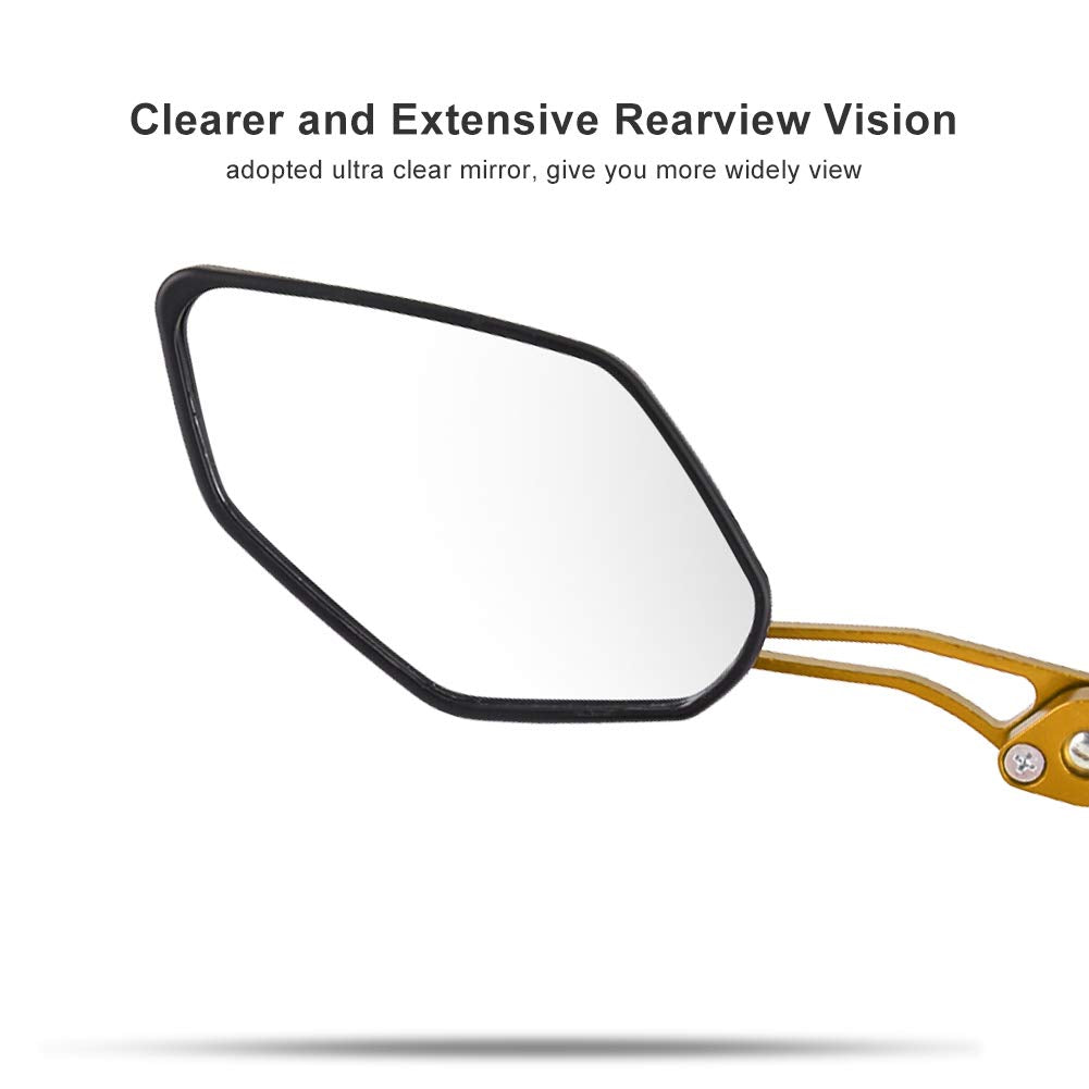 Q: What features enhance the visibility of these motorcycle mirrors?A: These mirrors are designed with ultra-clear surfaces that provide a wide rearview vision, allowing for better visibility when riding during the day or night.