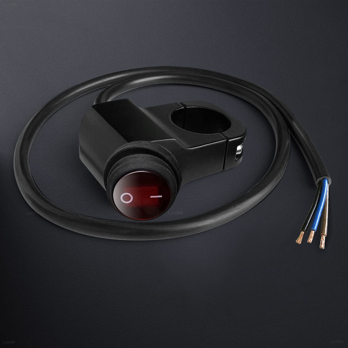 ATV Handlebar Light Switch Specification:Weight: 2.4 ouncesPackage Dimensions:6.4 x 5 x 1 inchesCable length: approximately 55cm longShell Color: BlackIndicator Light Color: RedSwitch Material: Aluminum Alloy+copper wirePackage includes:1 Piece of ATV handlebar light switch Universal handlebar switch, fits for handlebar in diameter: 22-23mm (7/8'' inch), used on DC 12V electrical system