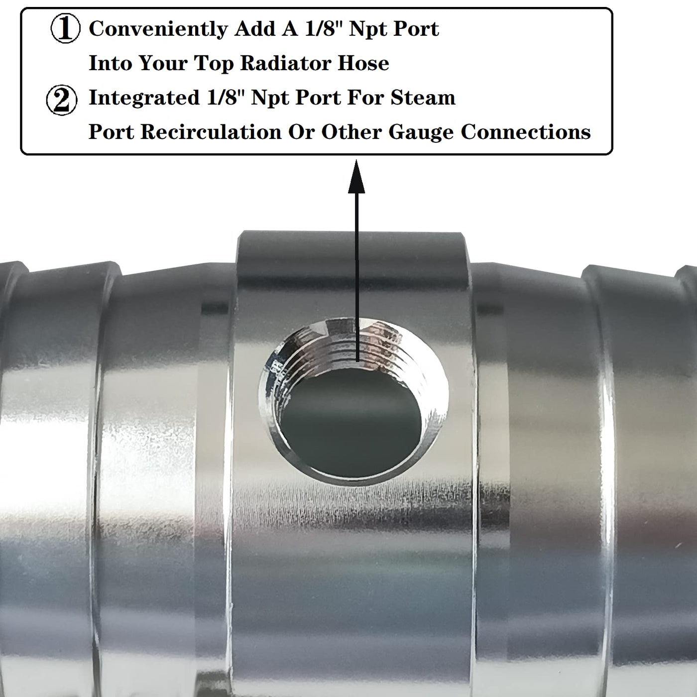 Versatile Size: The 1-inch OD at both ends of the radiator hose sensor adapter facilitates easy compatibility with most factory LS vehicle sizes. The 1/8" NPT side port is perfect for vapor port recirculation or other gauge connections.