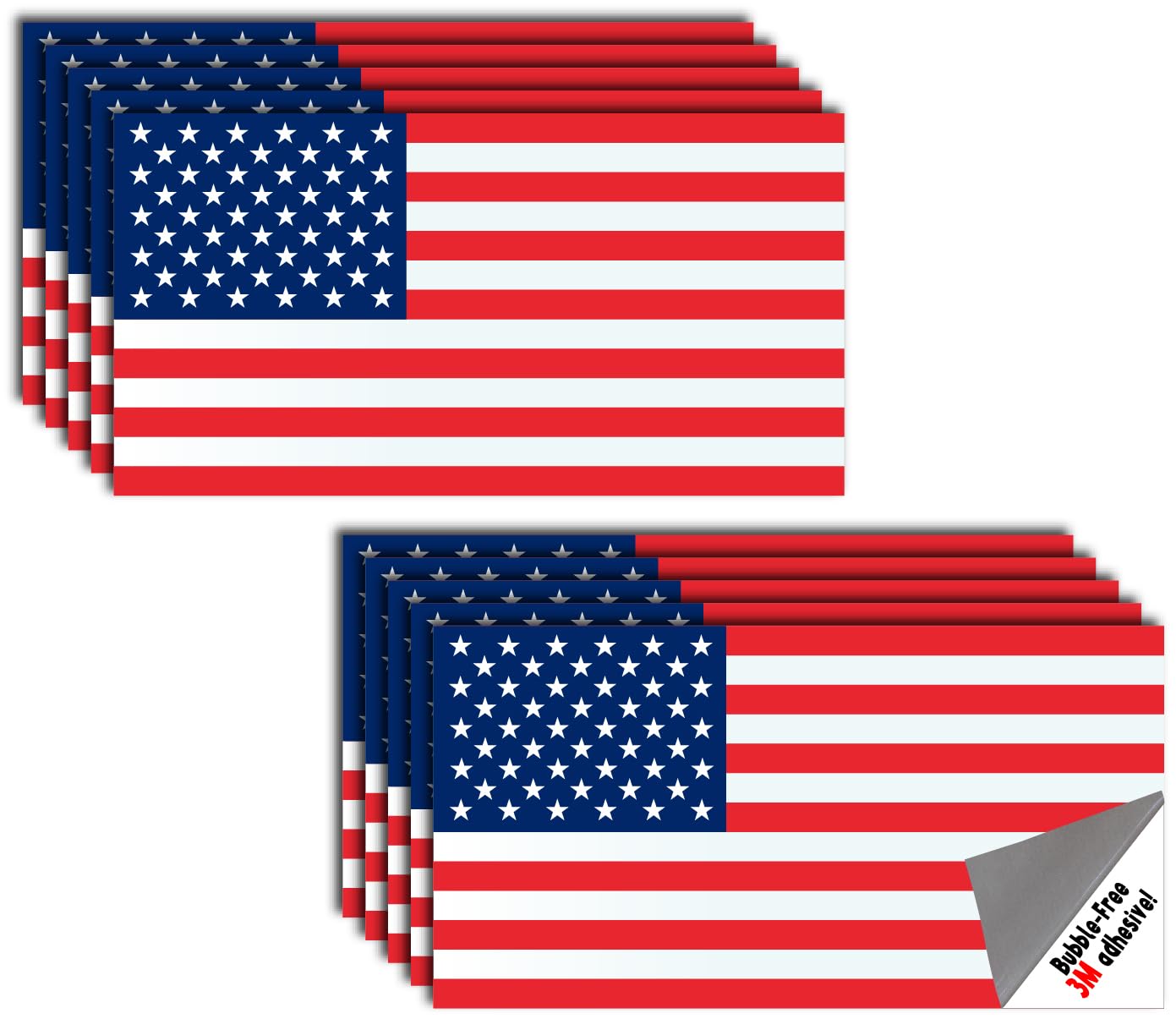 10 Pack American Flag Stickers - Made of 3M Vinyl - USA Patriotic Stickers - Bubble-Free Adhesive - Dishwasher Safe