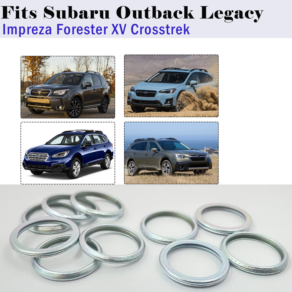 Q: What vehicles are compatible with these Subaru oil drain plug gaskets?A: These Subaru oil drain plug gaskets are compatible with the following models: 2013-2015 Subaru BRZ, 2013-2018 Subaru Outback, Subaru Legacy (4-Cyl. Only), Subaru XV Crosstrek (All Engines), 2012-2018 Subaru Impreza (Non-Turbo), and 2011-2018 Subaru Forester (2011-2012 Non-Turbo, 2014-2018 All Engines).