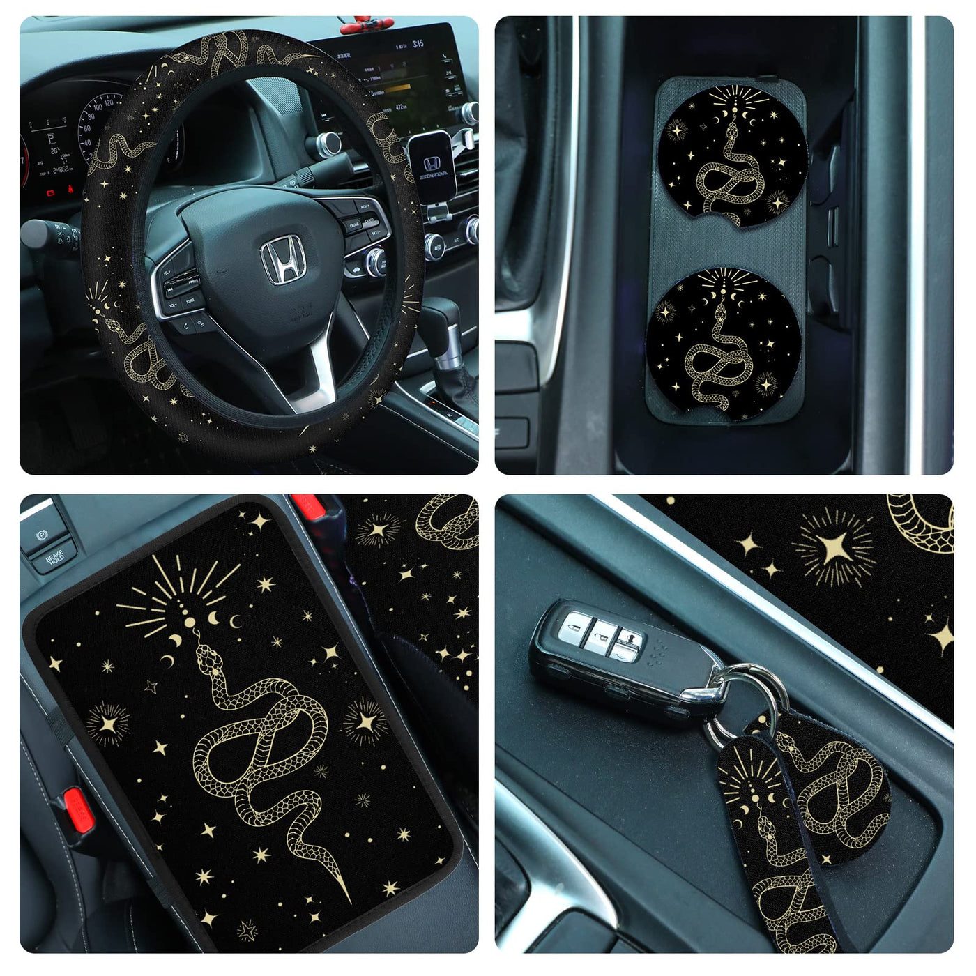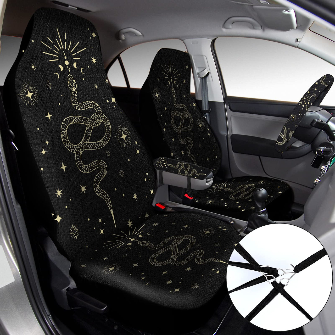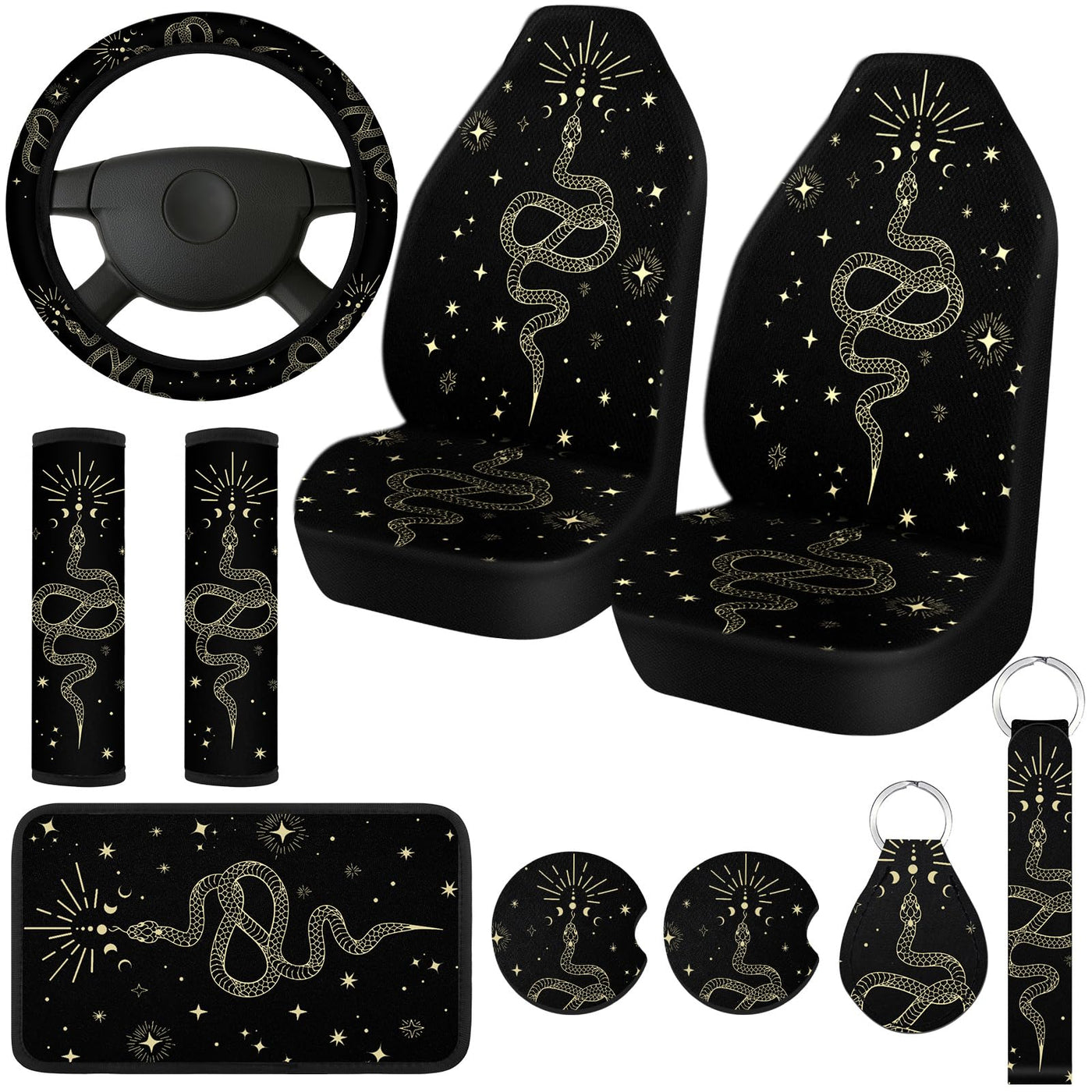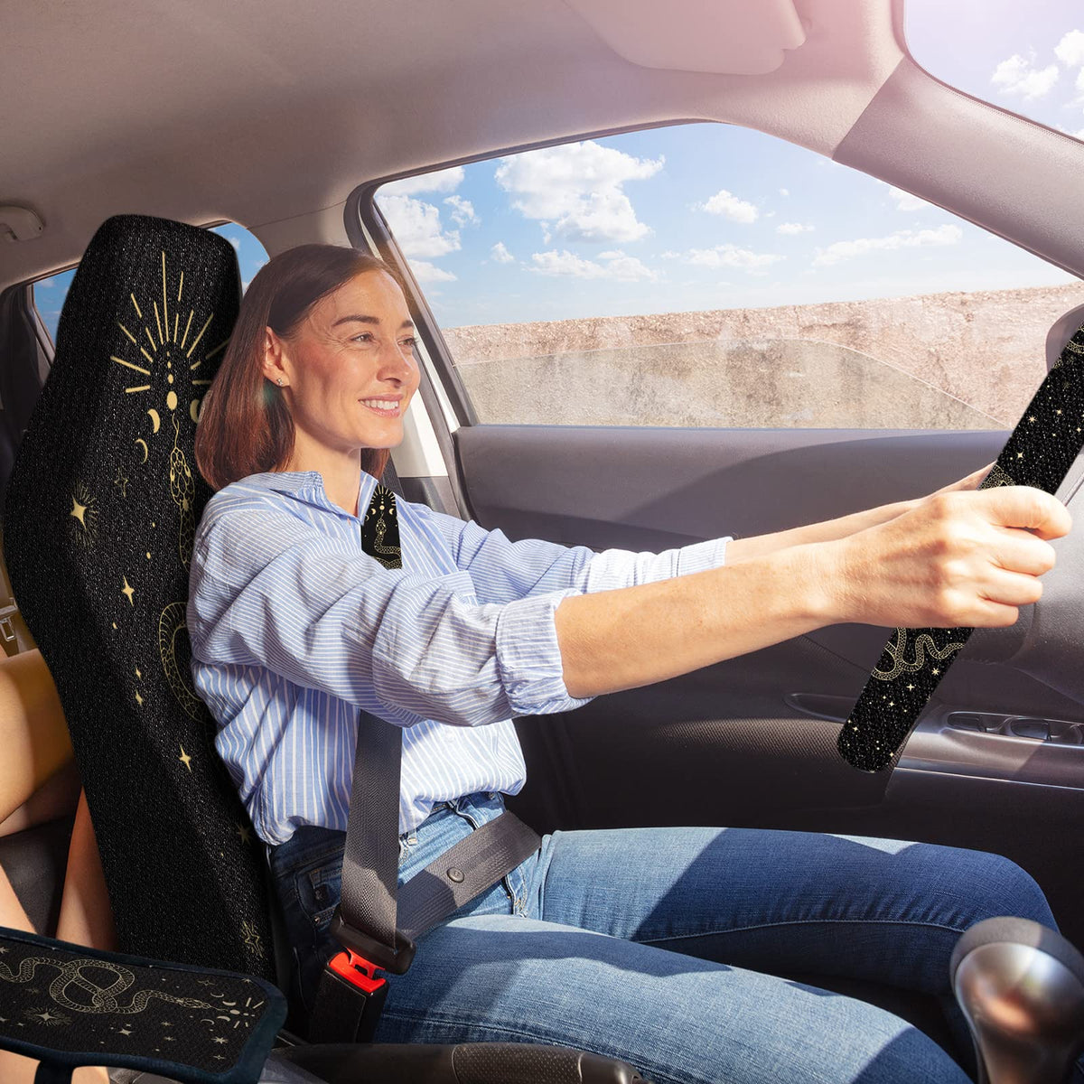 10 Pcs Moon Star Car Seat Covers Full Set Car Accessories for Women Front Seat Cover Steering Wheel Armrest Cover Seat Belt Cove