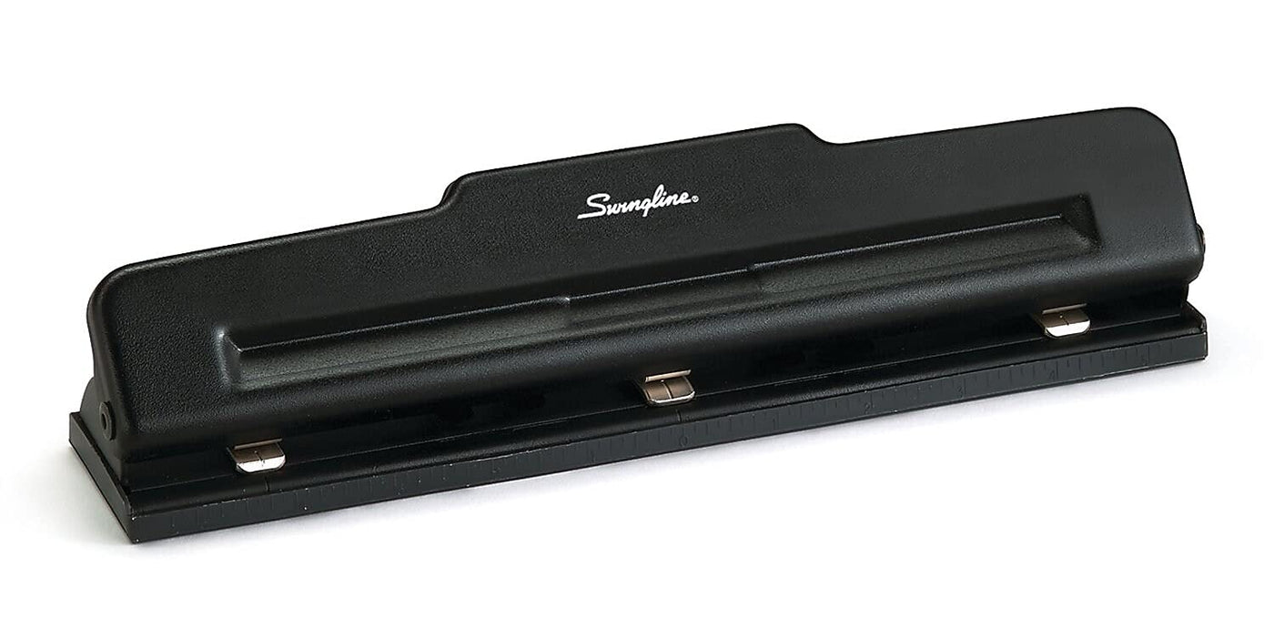 10-Sheet Desktop Three-Hole Adjustable Punch 9/32'' Holes Black