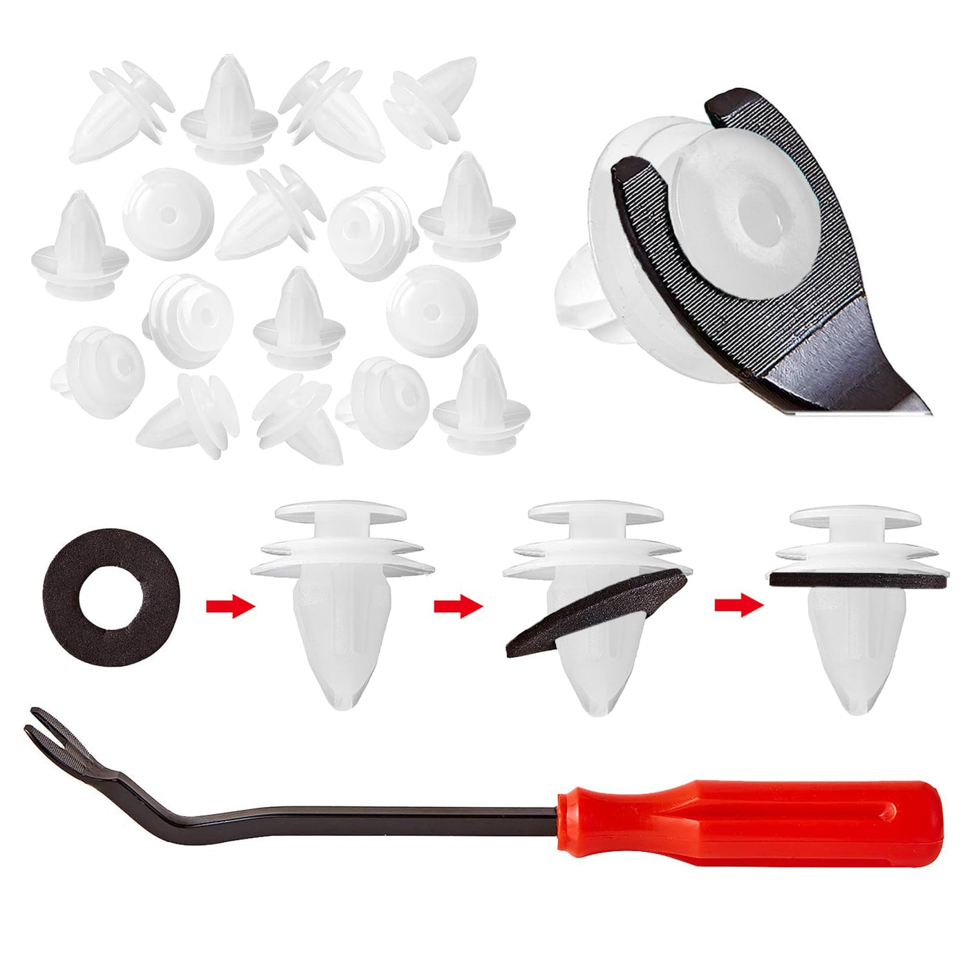 Details: Material: Nylon plastic Color: Green Size: Top Head Diameter: 12.7mm / 0.5'' Bottom Head Diameter: 17.5mm / 0.69'' Stem Diameter: 8.5mm x 9mm / 0.33'' x 0.35'' Stem Length: 13mm / 0.51'' Replace Number: OEM #90467-10188, 90467-A0005 Compatible with: Toyota 4Runner 2005-2016 Scion tC 2004-2006 Scion xB 2012-2015 Scion iQ 1998-2015 Toyota Corolla 2000-2017 Toyota Tundra 2000-2005 Toyota Echo 2001-2017 Toyota Prius 2001-2008 Toyota Solara 2001-2005 Toyota Sequoia 2001-2013 Toyota Highlander 2002-2014 Toyota Camry 2002-2012 Toyota Tacoma 2003-2016 Toyota RAV4 2003-2014 Toyota Matri 2004-2010 Toyota Sienna 2006-2012 Toyota Yaris 2009-2016 Toyota Avalon 2010-2016 Toyota Venza Package: 100Pcs trim door panel retainer clips 1Pcs plastic fastener remover