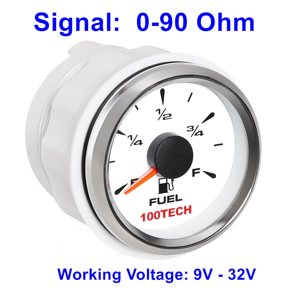 100TECH Boat Fuel Gauge 0-90ohm Fuel Gauge for Boat 52mm 2-1/16 Aftermarket Gauges Automotive Replacement Motorcycle Gas Car Tru