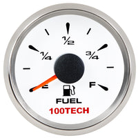 100TECH 8 Color Selectable Backlit 0-90 Ohm Boat Fuel Gauge is Perfect for Anyone Building a Custom Dash or Replacing Their Stock Fuel Level Gauge. It's Installed by Connecting the Gauge Directly to your Vehicle's Fuel Level Sensor and Allows You to Closely Monitor the Level of Fuel in Your Boat/Vehicle. Product Specifications: -Fixing dimension: 52mm(2'') or 2-1/16'' -Indicating Range: 0-100% Signal : 0-90 Ohm -Working Voltage: 9-32V(12V/24V) -Operation Mode: LCD display, Stepper Motor Package Includes: 1x Marine Fuel Gauge 1 x Wiring harness 1x Installation Instruction Note: 1)This 100TECH 0-90 Ohm Fuel Gauge Can Only Work With The Level Sender With The Corresponding Resistive Output :0-90 Ohm 2)Its Suggested That Hook Up The New Gauge And Sensor On The Bench First! It Allows You To Easily Test Both Gauge And Sensor And Configure It Prior To Reinstalling 3)100TECH Guarantees with 1 Year Limited Warranty & Free Lifetime Technical Support