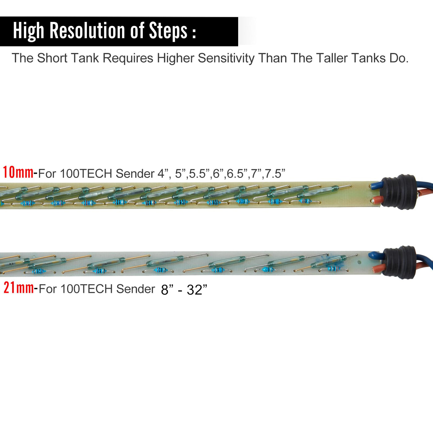 100TECH Stainless Steel Fule tank Sending Unit is Made With OKI Reed Switch(Imported from Japan). It's Easy to Install. A Perfect Match with All the Screw Holes Lining up the Unit Comes with 5pcs of Screws and 1pc of New Neoprene Gasket. It is the Direct Replacement for Arm Type Sensors or Original Wema Unit for Better Durability and Reliability. The Substantial Flange can Seal the Tank Completely The 100TECH Marine Fule Sending Units are Widely Used in Marine, On-road, Off-road, Generator set, and Industrial Applications. The Electric Liquid Level Sending Unit Utilizes Reed Switch and Magnetic Field technology. In 100TECH Reed Switch Level Senders the Float is the Only Moving Part of the Sender, Thereby Minimizing Potential Mechanical Failures. Material:Body: SUS 316 Stainless Steel. Cable: PVC. Float: NBR. Mounting Methods: Standard SAE 5 hole pattern. Protection Rank: IP65. Output Signal: American Standard 240-33 ohms (240 ohms at empty , 33 ohms at full). Resolution Range: 10mm: 4 ,5 ,6 ,6.5 7 ,7.5 21mm: 8 ,8.5 ,9 ,9.5 ,10 ,10.5 ,11 ,11.5 ,12 ,12.5 ,13 ,13.5 ,14 ,15 ,16 ,17 ,18 ,19 ,20 ,21 ,22 ,23 24 ,25 ,26 ,27 ,28 ,29 ,30 ,31 32 , Operational Temperature: -40F ~ +85F (-40C ~ +85C). Package Information: 1 x 100TECH Fuel Sending Unit 1 x Gasket 5 x M5*0.8 Length(16mm) Screws 1x Sending Unit Installation Guide Note: Please kindly pay Attention to the Product Description, Especially the Resolution and Length (the Length of Sender Should be 1'' less than the Depth of the Tank if tank is Plastic, and 0.5'' Less Than the Depth of the Tank if Tank is Metal) Before Placing the Order.