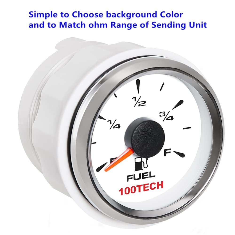 Q: How do I install the 100TECH Marine Fuel Gauge?A: Installation involves connecting the gauge directly to your vehicle’s fuel level sensor. The package includes a wiring harness and installation instructions to guide you through the process.