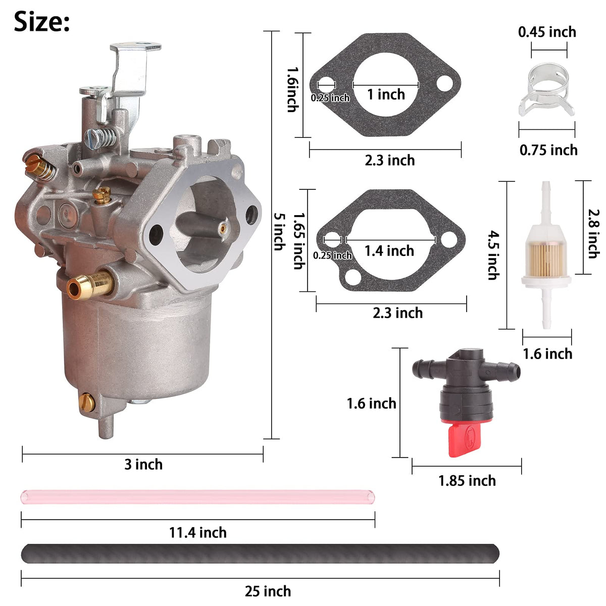 Q: What is included in the carburetor kit?A: The carburetor kit includes 1 carburetor, 2 gaskets, 1 fuel shut-off valve, 2 fuel filters, 2 fuel lines, and 4 clamps, providing everything you need for installation.