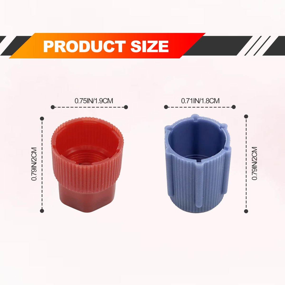 Material:ABS Plastic + rubber sealPackage Included:5Pcs x Red AC Caps, 5Pcs x Blue AC CapsPeculiarity:Pressure resistance, corrosion resistanceCompatibility:Fit for most of vehicles with R134a AC system, Not Compatible with 2014 RAV4, 2018 Nissan VersaTips:The dust cap has no internal threads, only dustproof function.