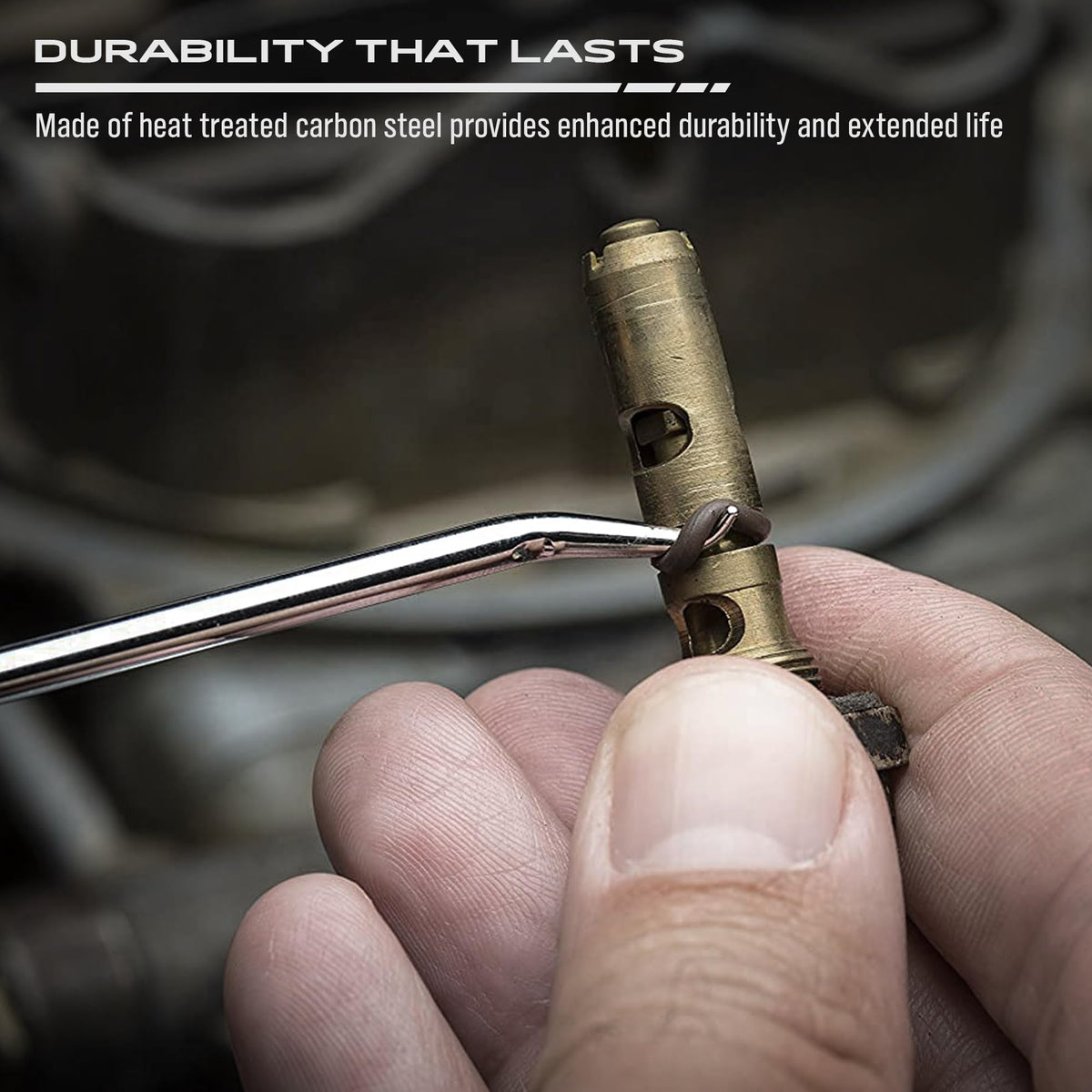 Discover unparalleled versatility and precision with our 11-Piece Pick and Hook Set, your ultimate solution for automotive and electronic repairs. This comprehensive kit, featuring a 90 Degree Hook, Straight Pick, and more, is engineered for durability, boasting a heavy-duty design capable of over 200 pounds of drawing force. Ergonomically crafted with a soft rubber handle, it ensures comfort and reduces hand fatigue during prolonged use. The set's portability, facilitated by a specialized tool bag, makes it a top choice for mechanics, DIY enthusiasts, and electronic repair professionals. Ideal for tasks ranging from oil seal and O-ring removal to intricate electronic fixes, this set is a must-have for precision work in any toolkit. Elevate your repair game with this essential set, the perfect blend of functionality, strength, and precision.