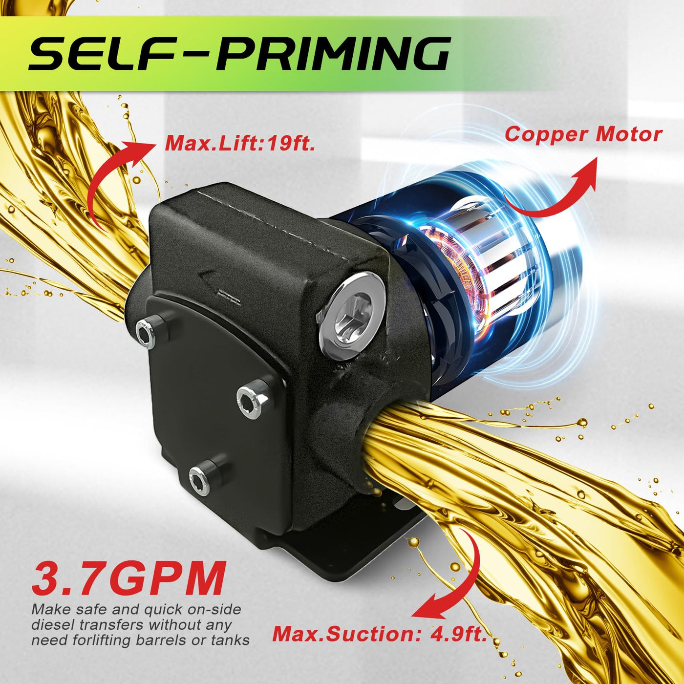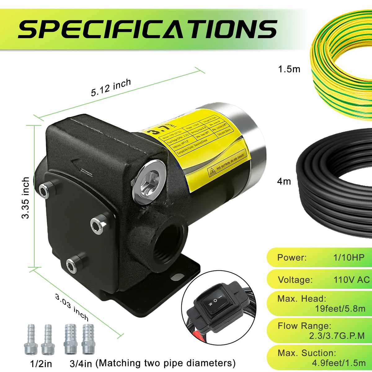 110V Automatic Gasoline Fuel Transfer Pump with Forward and Reverse Pumping, 2.3/3.7 GPM Portable Self-priming Fuel Oil Transfer