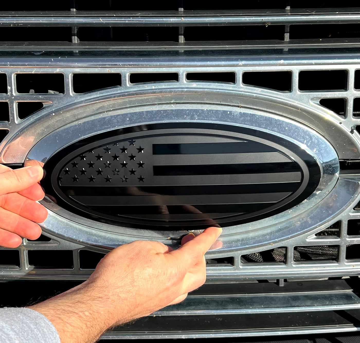 12 Inch Front Grille Tailgate Rear Aluminum Overlay American Black Flag Emblem For Superduty F250 F350 Super Duty (Black, 12'')