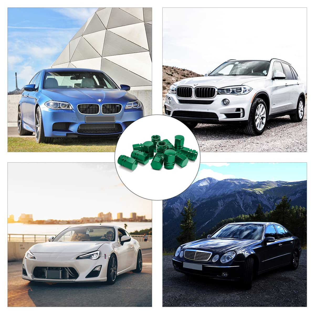 [TOP-QUALITY PRODUCT] This tire valve stem cap is made of high-quality aluminium alloy material with exquisite workmanship. Rotating thread structure design can help to enhance seal, effectively prevent air leakage, protect valve stem from wearing, rusting, corrosion and being covered by rainwater, snow, dust due to long-time using, extend the service life of the tire, also ensures your driving safety. | [UNIVERSAL USE] Measuring about 10mm in diameter, 16.7mm in height. General for most cars, vehicles, bicycles, motorcycles, SUVs, trucks, vans, sedans in the market. Please make sure that your car tires have standard American type valves before ordering or it may not suitable for your car. | [UNIQUE GIFT] This product can help to decorate your car, make the car looks more stylish and fashionable, also we have 10 colors that you can buy more for friends and families as a gift, this would be useful and special for them! | [EASY TO INSTALL] Our valve stem cap can be easily tightened and loosened by twisting the cap to install or remove, no need any tools. It is in a proper size that can be stored in car without occupying much space when you're not using or want to replace another valve stem cap. | [RELIABLE SERVICE] Package includes 12 pcs. We offer 12-month warranty, please buy with confidence! Welcome to get in touch with as via Amazon Mail if you have any questions, our team is always here to satisfy all of you!