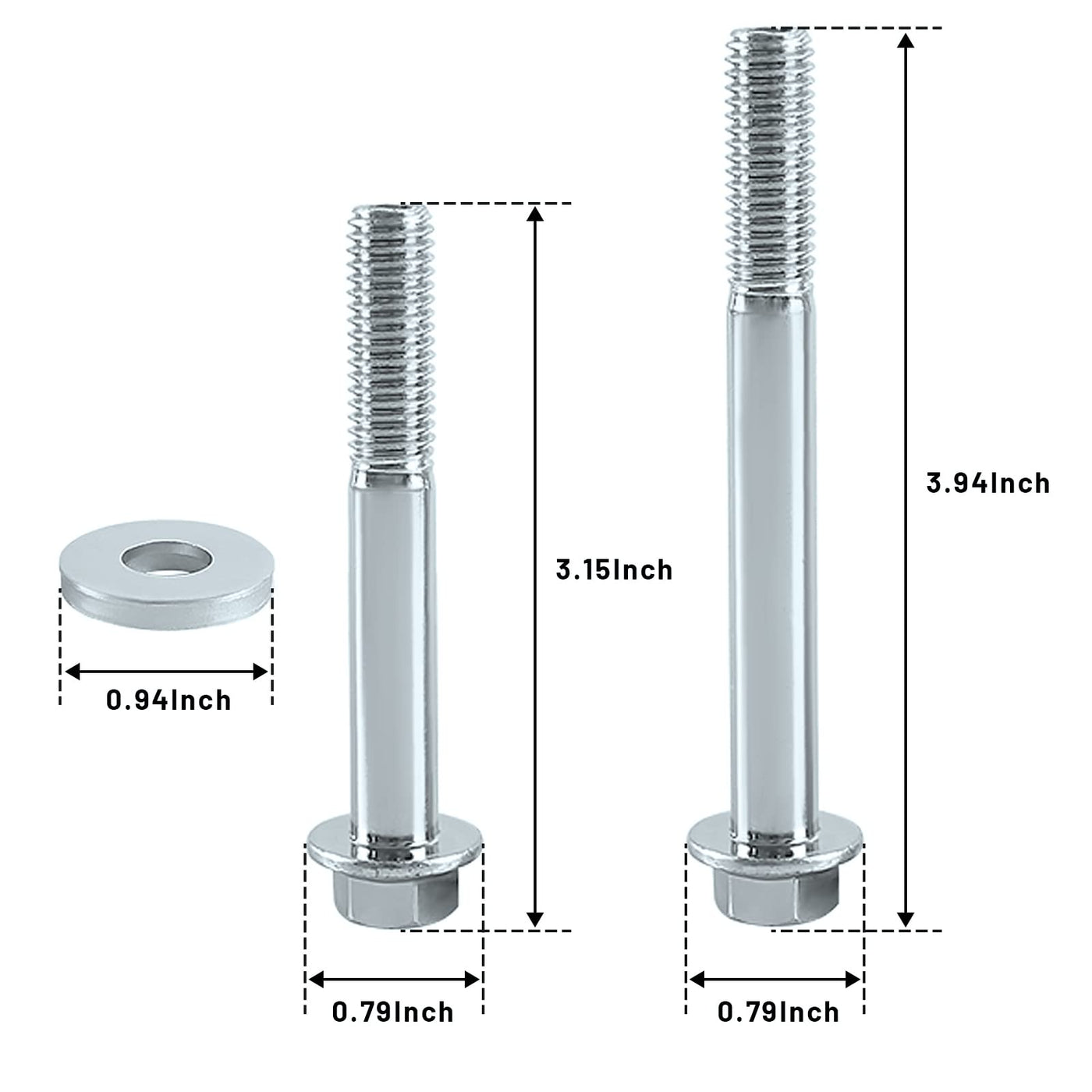 Q: How many bolts and washers are included in the kit?A: The kit includes a total of 12 pieces: 4 bolts measuring M10-1.5 x 70mm, 4 bolts measuring M10-1.5 x 90mm, and 4 M10 washers.