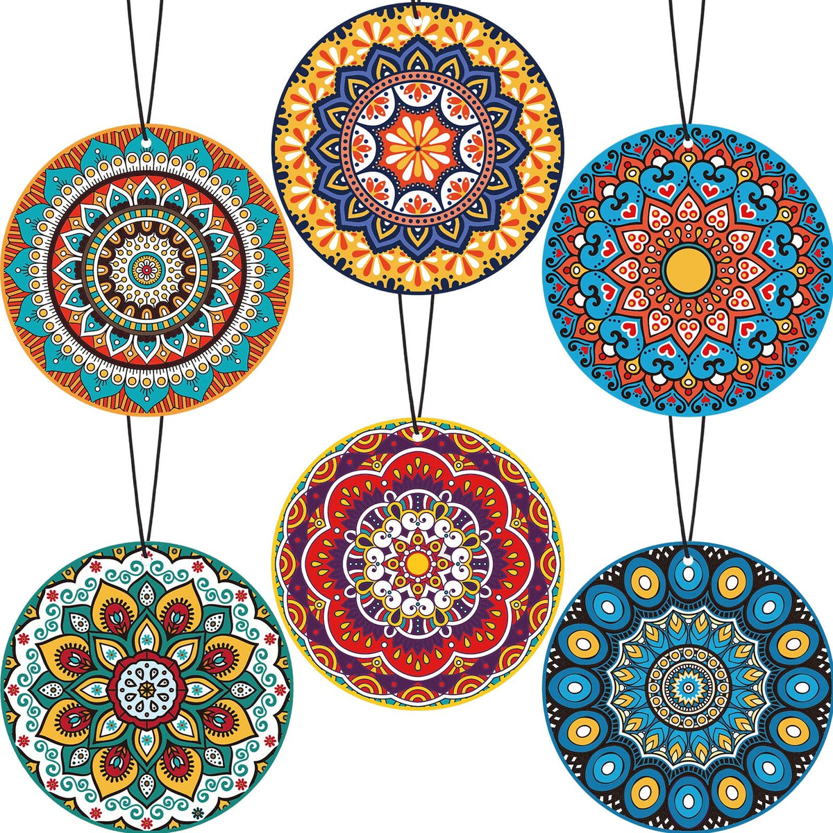 12 Pieces Mandala Car Air Fresheners, Hanging Hippie Car Accessories, Boho Style Automotive Air Fresheners Long Lasting For Women Men Auto Interior Decoration