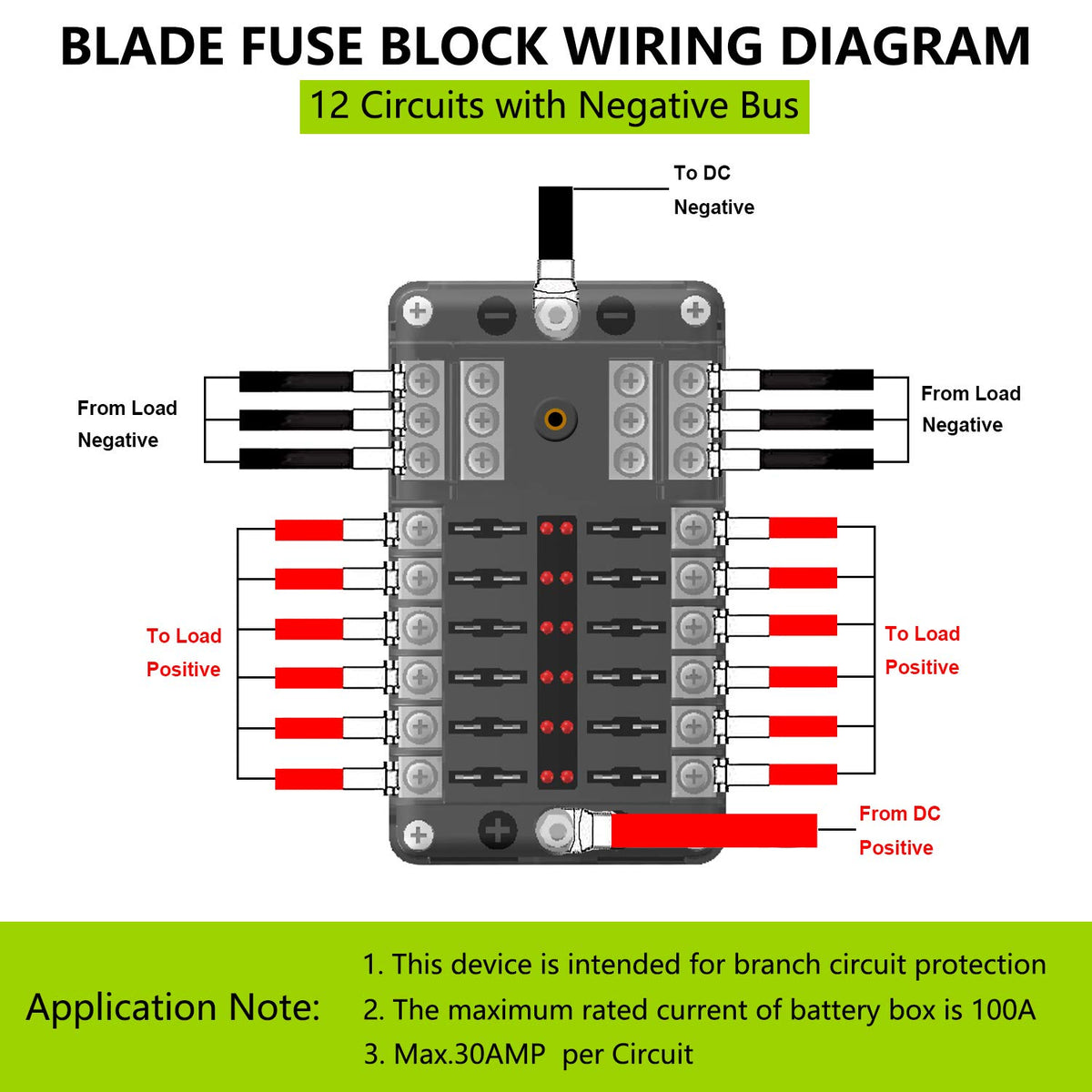 12 Way Fuse Block W/Negative Bus - Atc/Ato 12 Circuit Fuse Box With Ground, With Negative Bus & Protection Cover, Bolt Connect T