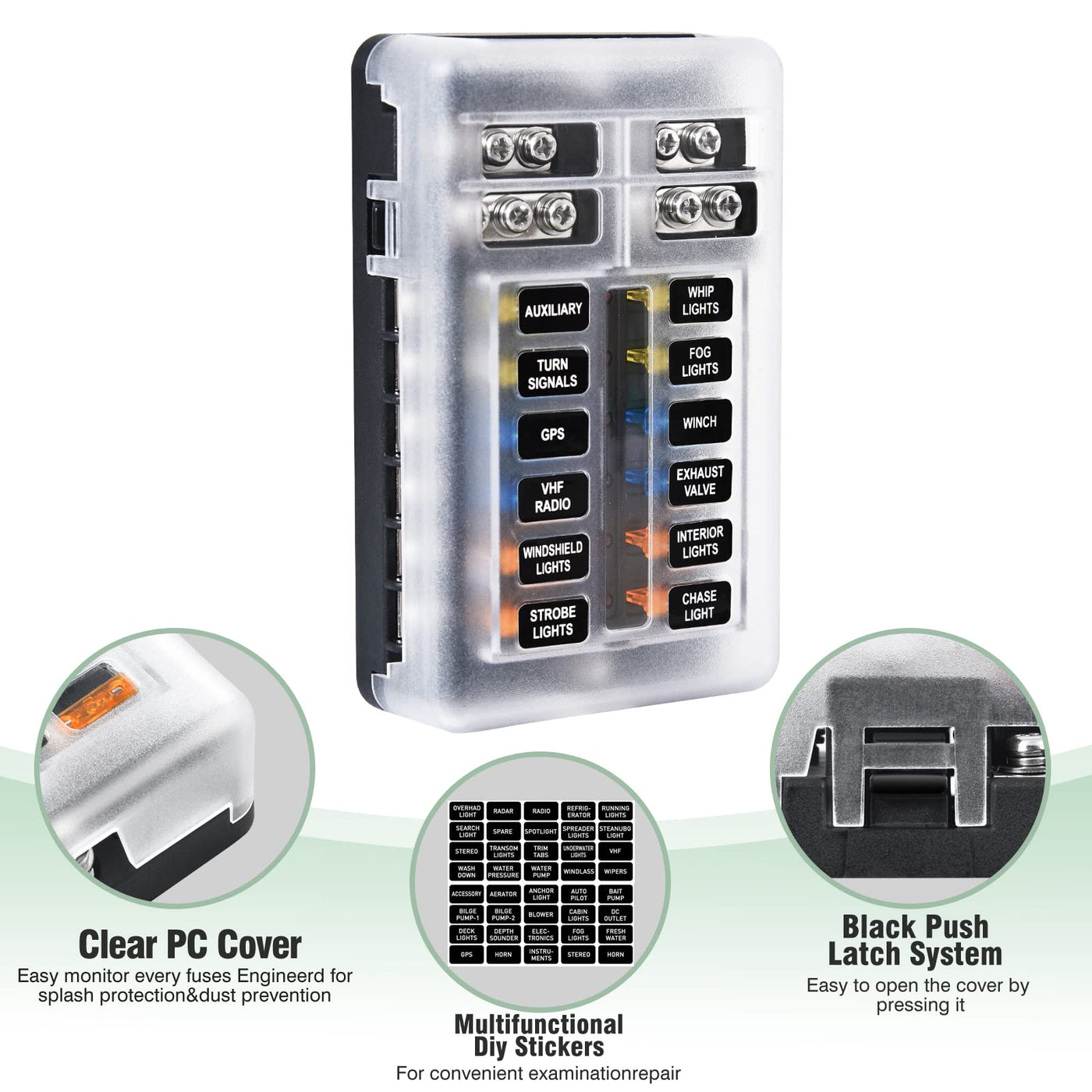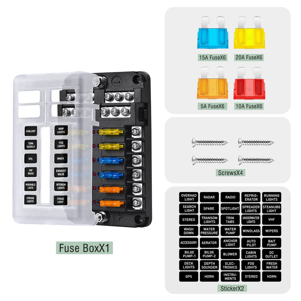 12-Way Marine Fuse Block,Waterproof 12V Fuse Block With Led Indicator For 12V/24V Automotive Golf Cart Truck Car Boat Marine Rv