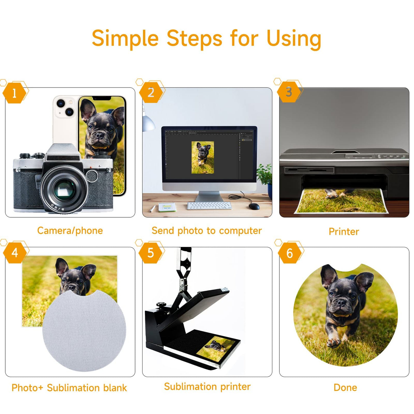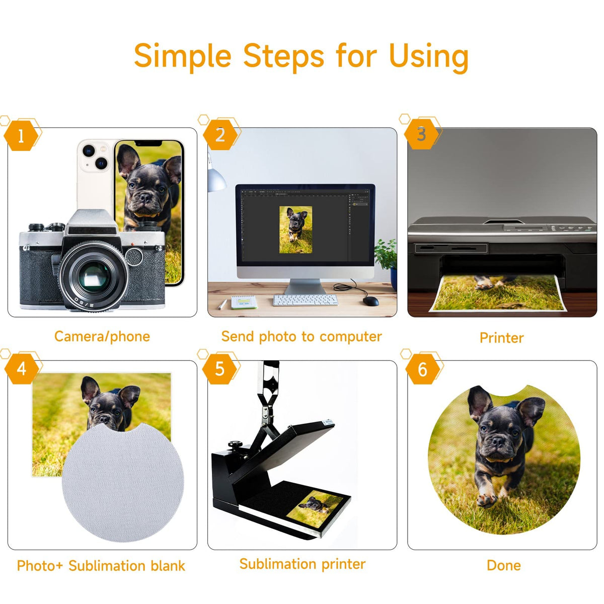 Q: What are sublimation car coasters and how do they work?A: Sublimation car coasters are made from absorbent neoprene material designed to keep your car's cup holders clean. They are blank coasters that can be customized using a heat transfer process, allowing you to add vibrant designs or images. When heated, the sublimation ink transfers onto the coaster, creating a permanent, high-quality print.