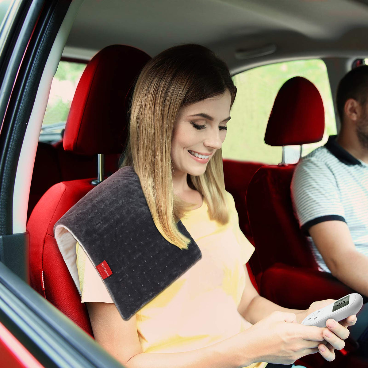 12V/24V Car Electric Blanket For Back Pain Relief, Comfytemp Travel Blanket With 6 Heat Setting, 5 Auto-Off, Portable Mini Blanket For Back Pain, Shoulders And Cramps Relief, 12X 24 Washable