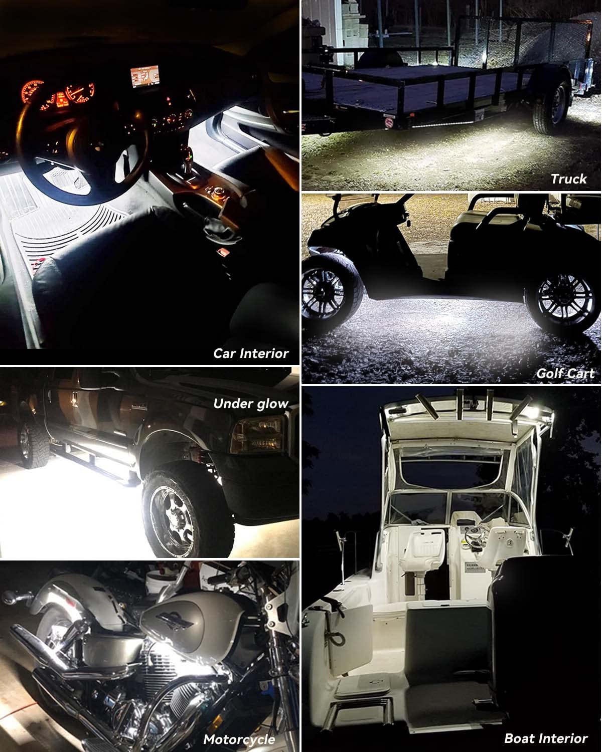 12V Led Light Strip 24'' Connectable White Led Strip Lights For Cars Golf Cart Motorcycle Boat Trucks Waterproof Interior& Exter