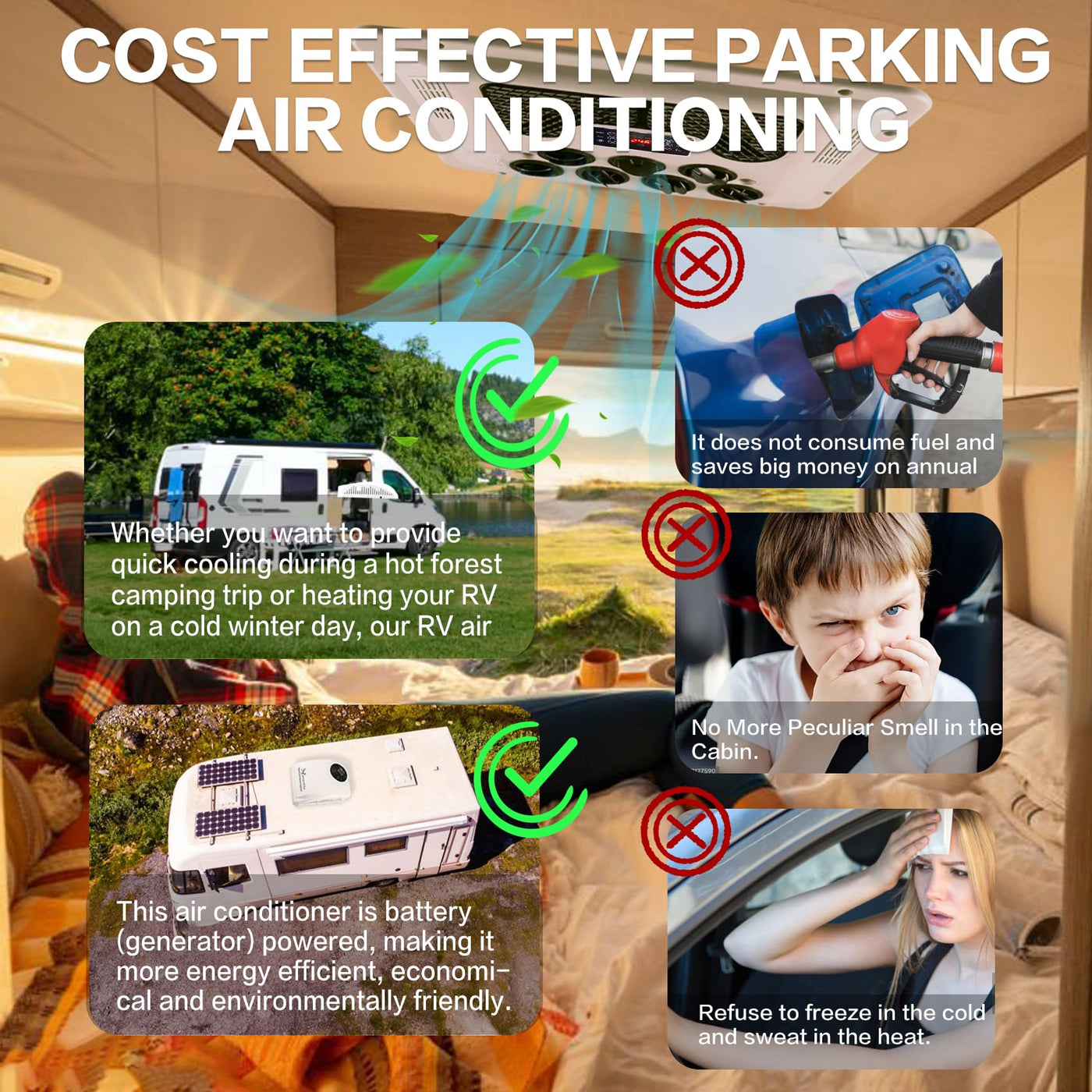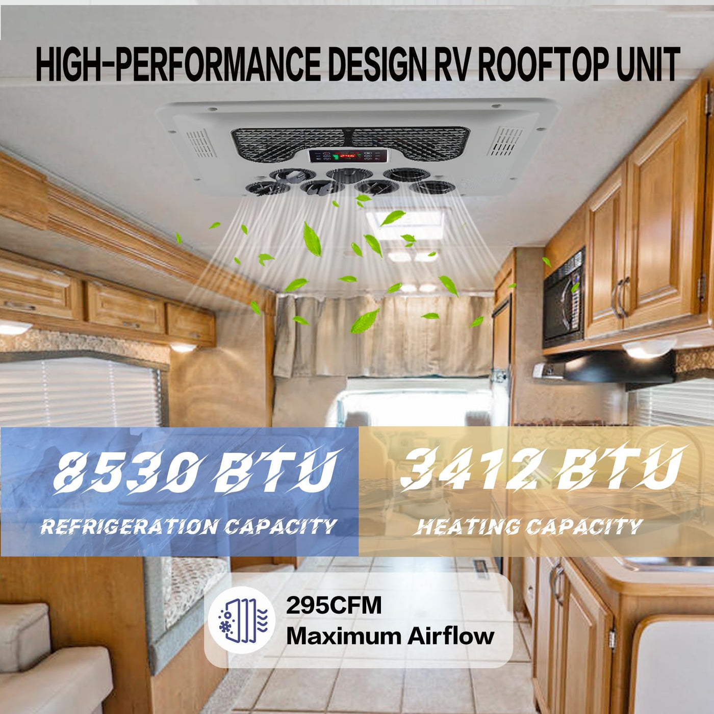 12V RV Air Conditioner 8530 BTU Non-Ducted, 45dB 2-in-1 RV Rooftop Air Conditioner for Heater and Cooling, Easy-to-install 12V R
