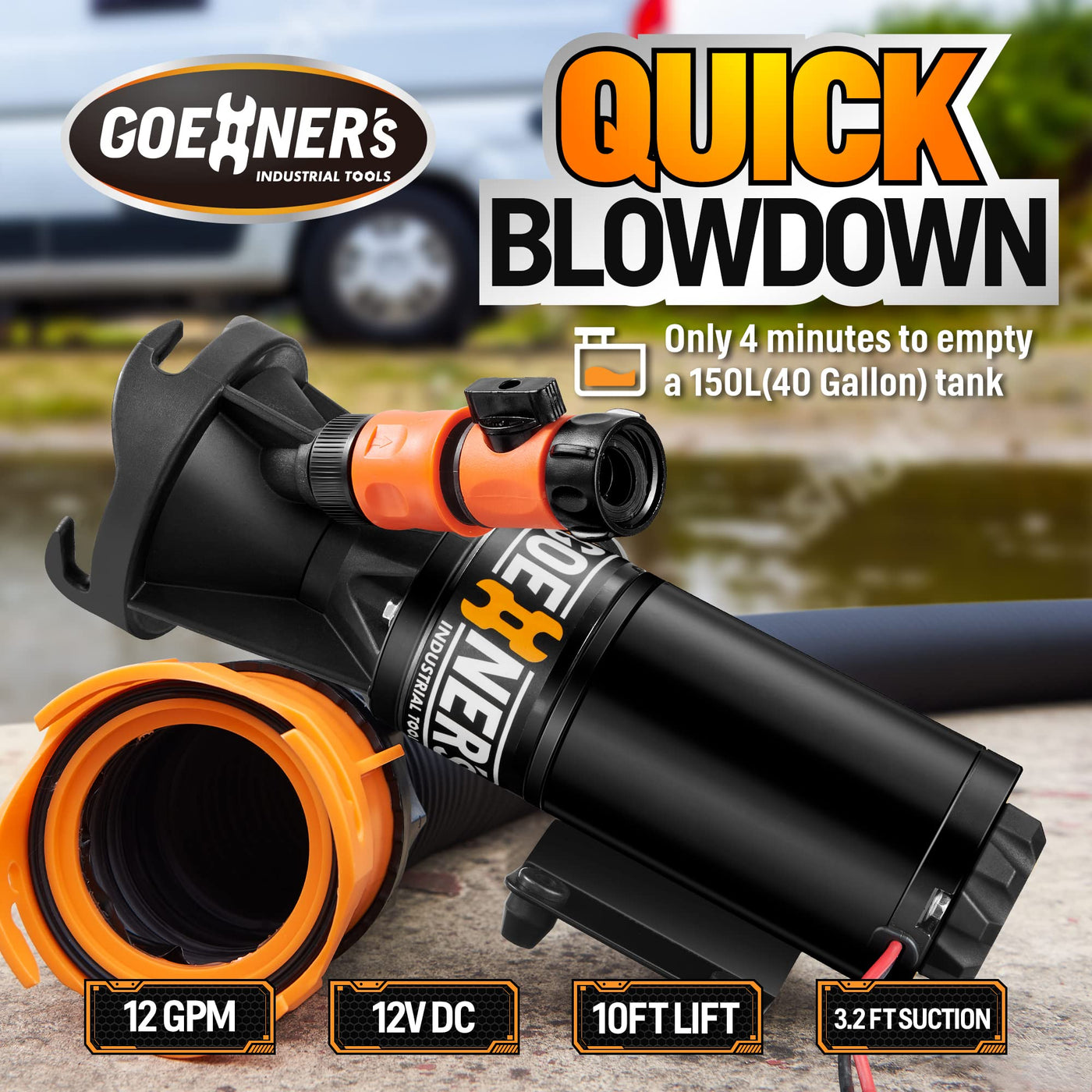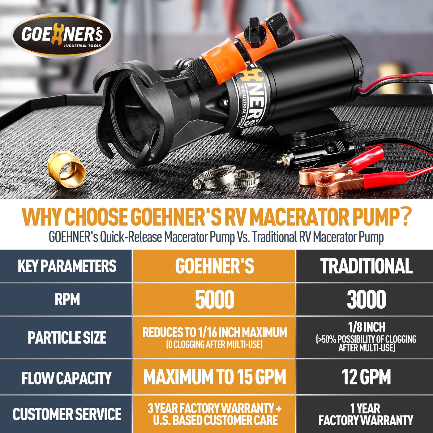 12V Rv Portable Macerator Waste Pump For Sewage, 12Gpm Suction 3.2 Feet Lift 10 Feet, Complete Rv Macerator Pump Kit For Right O