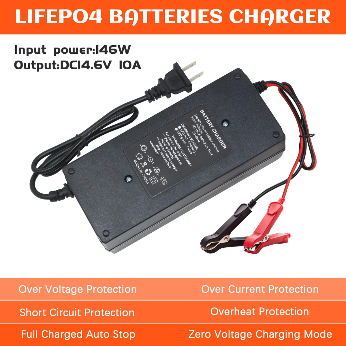 Mebilee 14.6V 10A LiFePO4 Battery Charger for 12V Lithium Iron Phosphate, Fast Charging, Built-in Safety Protections, Battery Maintainer