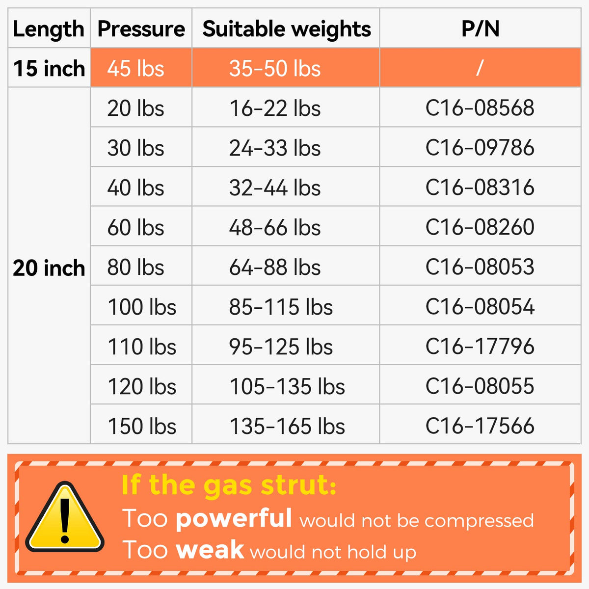 15 Inch Gas Strutextended Length: 1496 Inch, Compressed Length: 906 Inch 45 Lb 200 N Per Strut, 2 Pack Package Information: 15 Inch 45 Lbs Gas Prop Strut X 2 15 Inch Gas Shockerfect Oem Replacement 15 Inch Gas Sturt Shock: Precisely Designed According To The Original Gas Shock, Prop Shock Can Be Used In Your Camper Shell Door Glass Window Hatch Strutpickup Canopy Leer Truck Rear Hatch Door Cover Glass Aluminum Hatchhot Tub Coverhatchback Glass Doormotorehomes Compartment Doorrv Bottom Doorspa Cover Lifttool Box 15 Inch Gas Springif The Weight And The Pressure Of The Gas Strut Do Not Match, The Gas Strut May Not Work Properly, Please Select The Appropriate Gas Strut According To The Original Part Number And Pressure Value Note: The Gas Struts Can Not Be Compressed By Hands Before Installation Canopy Truck Gas Strutwe Have Gas Spring Installation Videos And Online Service To Guide Quick Installation In Minutes, Just Use A Small Screwdriver To Pry Up The Metal Clip Of The Old Strut To Remove It, And Then Align The New Strut Onto The End Fitting Of Your Car, Press With Your Finger To Snap It Into Place, Done Eer Camper Shell Gas Shock180,000 Times -Passed Tuv Fatigue Test Pamagoo Choose Special Low-Temperature-Resistant Materials, Working Temperature: -4060 -40140 Pamagoo Will Provide You With Professional Customer Service Both Before And After Your Purchase And Offer 18-Months Support Service