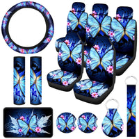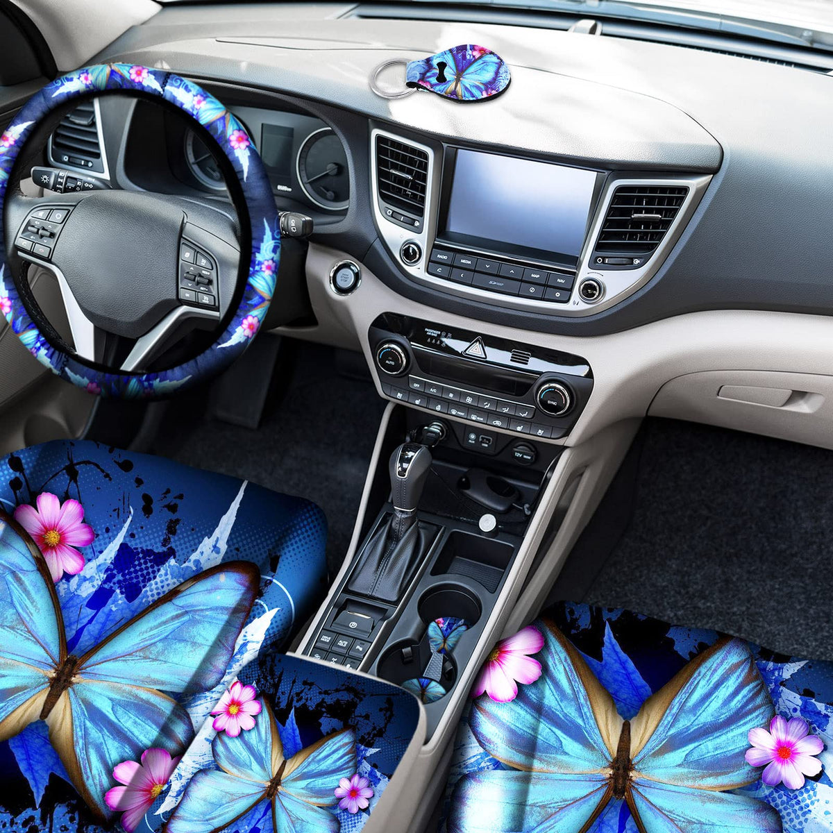 15 Pcs Butterfly Car Seat Covers Full Set Butterfly Car Seat Covers for Car Front Rear Seat Covers Steering Wheel Cover Wrist St