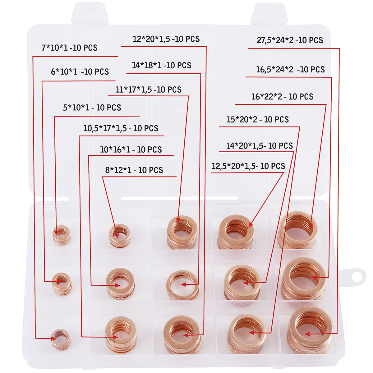 150Pcs Oil Drain Plug Crush Washer Gasket Seal Assortment – 5 6 7 8 10 10.5 11 12 12.5 14 15 16 16.5 17.5Mm - Universal Fit 150 Cooper Oil Plug Washers By Automajor