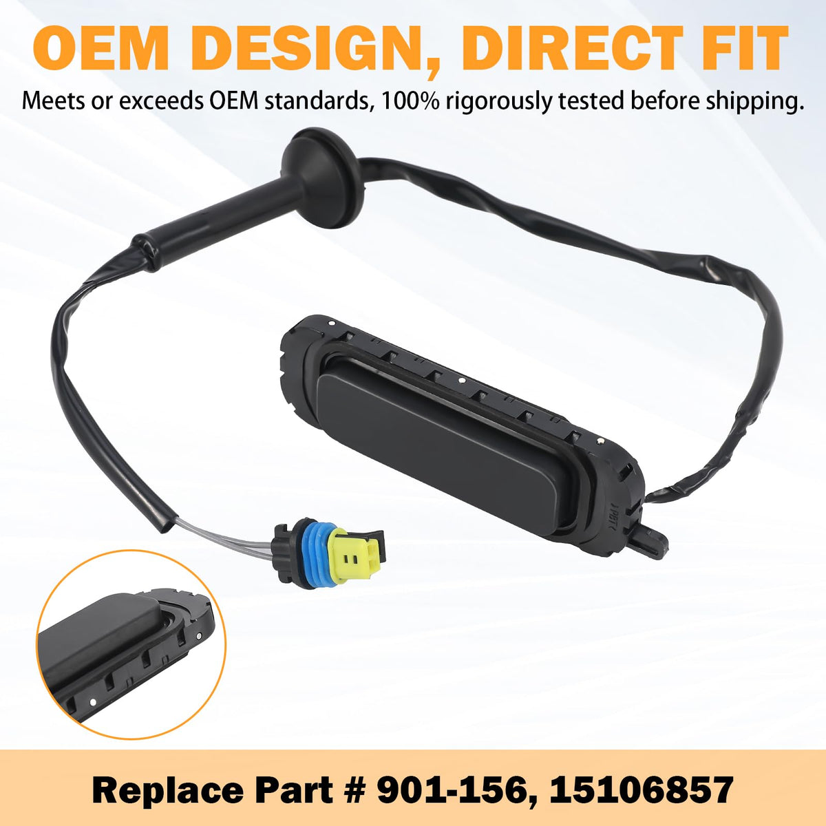 Q: Is the 15106857 Hatch Button compatible with my Chevrolet Suburban?A: Yes, the 15106857 Hatch Button is a direct replacement for various Chevrolet models, including the 2007-2014 Chevrolet Suburban 1500 and 2500, as well as the 2007-2014 Chevrolet Tahoe and Cadillac Escalade. Please check your vehicle's compatibility with OEM part numbers 15106857 or 901-156.