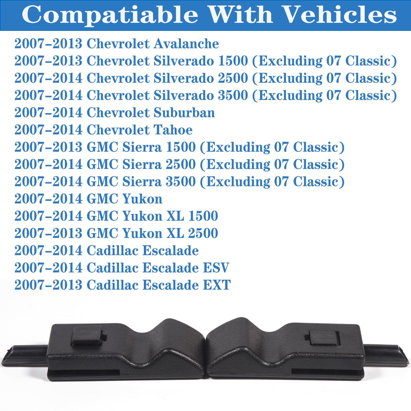 Q: Which vehicles are compatible with the 15844616 door lock knob?A: The 15844616 door lock knob is compatible with various Chevrolet and GMC models including the Chevy Avalanche, Silverado (1500, 2500 HD, 3500 HD), Suburban (1500, 2500), Tahoe (2007-2014), GMC Sierra (1500, 2500 HD, 3500 HD), Yukon (2007-2014), and Cadillac Escalade (2007-2013).