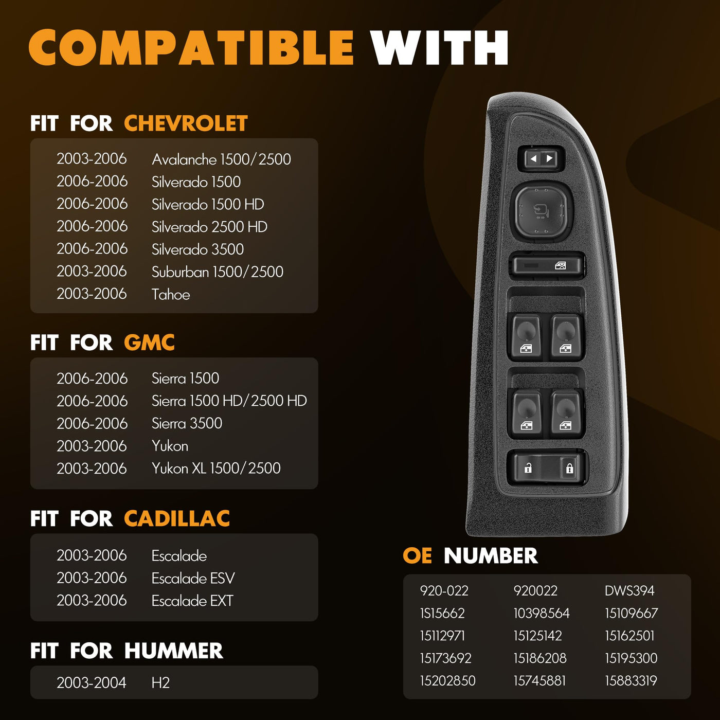 15883319 Master Power Window Switch & Black Bezel Assembly with Folding Mirror Switch Fit for 2003-2006 Chevy Silverado Avalanch