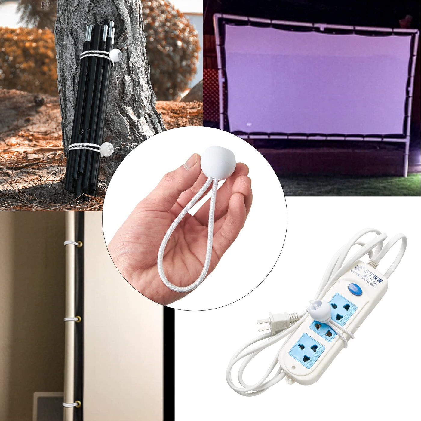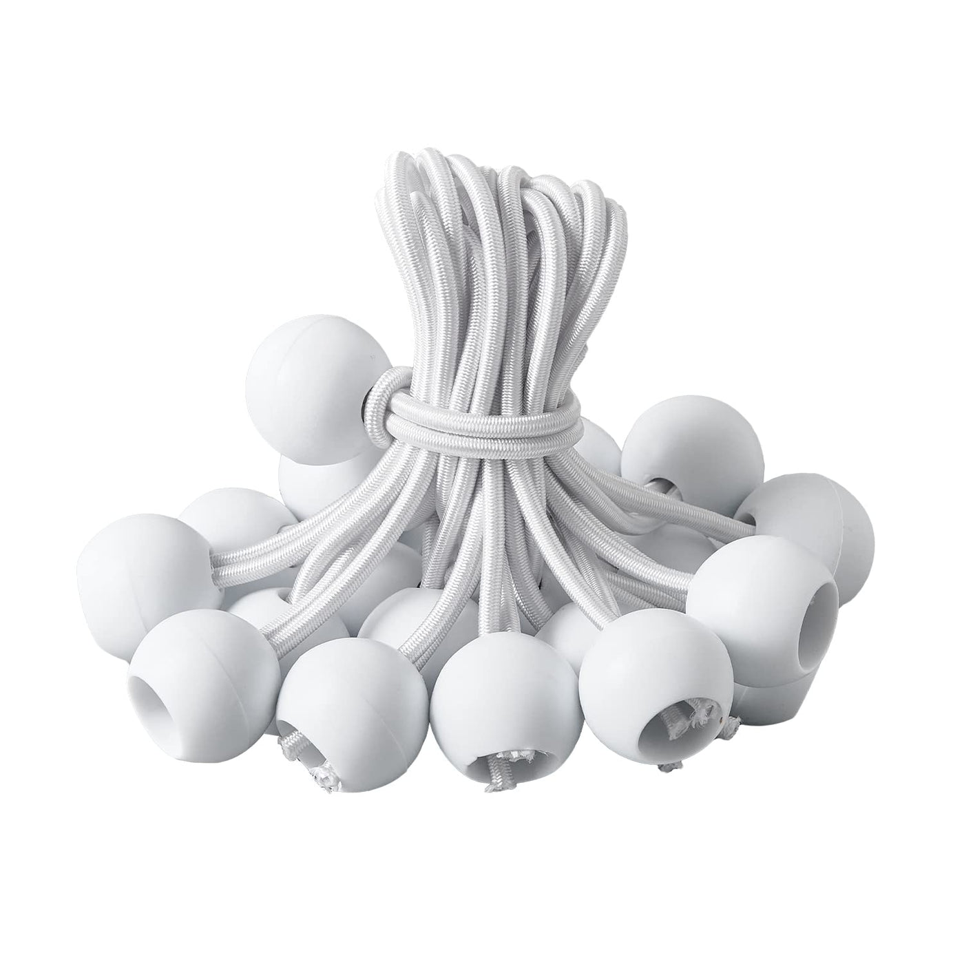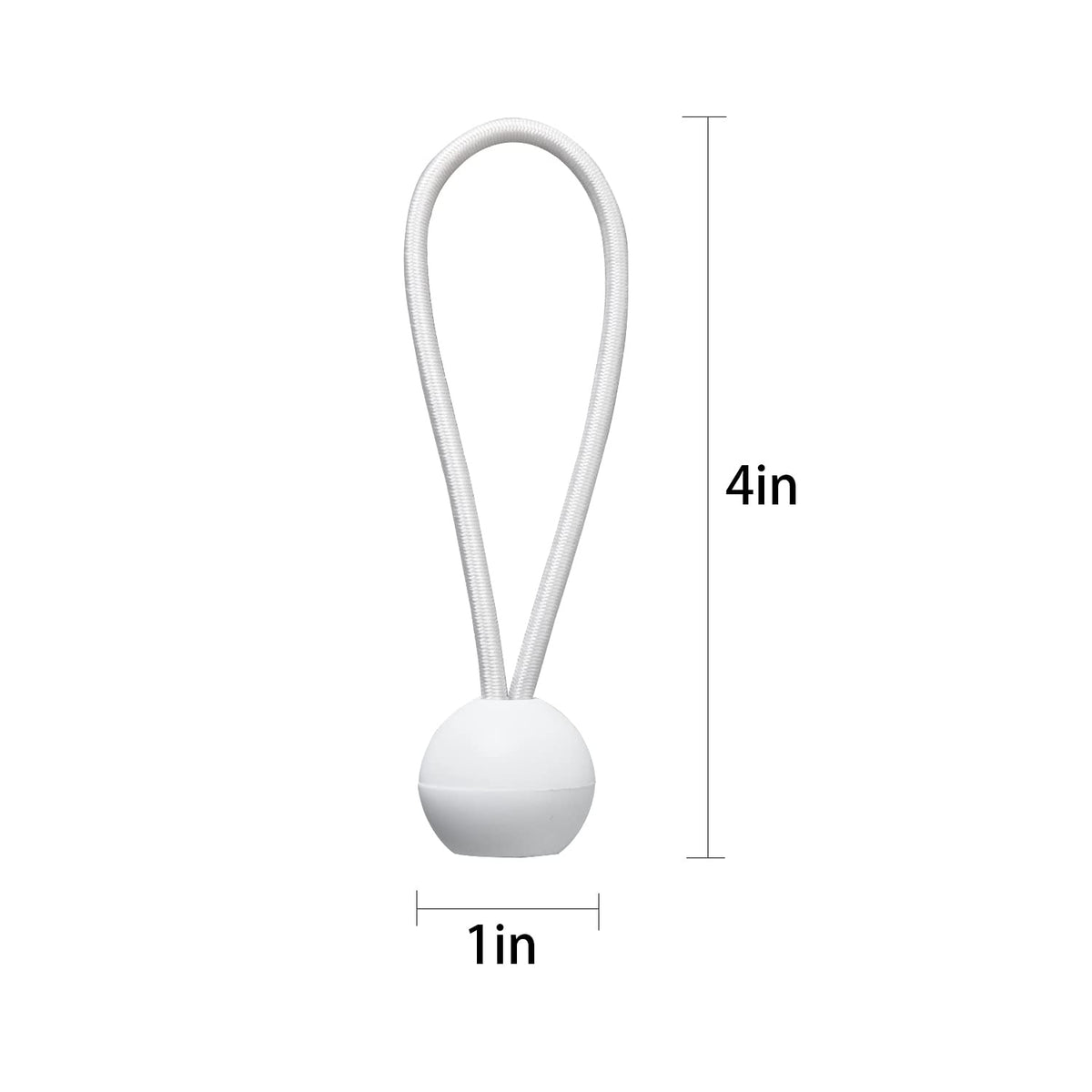16 Pack Bungee Balls Cords, White Ball Bungee Heavy Duty Heavyweight 4 inches Tarp Bungee Cords, Weather Resistant Tie Down Strap Diameter 4mm. Bungee Balls Cords for many applications, such as canopies, tarps, shades, Canopy, Tarp, Camping, Straps, Tent, Poles, Wires, sleeping bags, securing household items etc. Easy to use, install, remove or reposition, and are reusable.