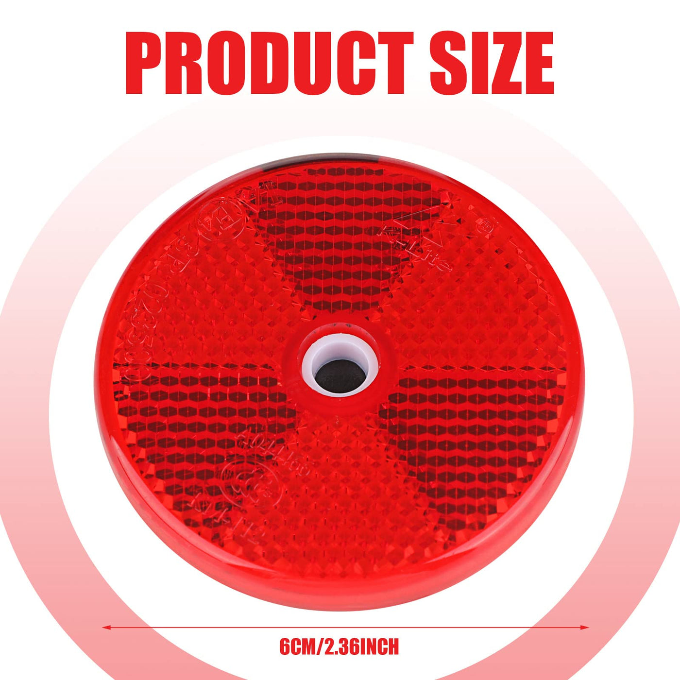 Features: Reflectors Have A Wide Range Of Applications In Daily Life, Suitable For Trailers, Trucks, Rvs, Campers, A Van And Other Vehicles As Well As Boats, Agricultural Machinery, Mailboxes, Driveway Property Marking Posts, Stakes, Houses, Walls, Gates, Bicycles, Motorcycles, Etc., Suitable For Indoor And Outdoor Use. Just Keep The Wall Dry And Clean, Tear Off The Adhesive Backed Protective Film, And Stick It In Place For 24 Hours. At The Same Time, If Your Wall Is Uneven Or Rough, There Is A Mounting Hole In The Center Of The Reflector For Screw Installation (Screw Not Included) For Quick And Easy Installation On Any Flat Surface, Ensuring A Firm Fit And Easy Removal. Specifications: Material: Plastic Color: Red Size: 6 Cm/ 2.36 Inches Package Includes: 16 X Round Red Reflectors Notes: Manual Measurement, Please Allow Slight Errors On Size. The Color May Exist A Slight Difference Due To Different Screen Displays.