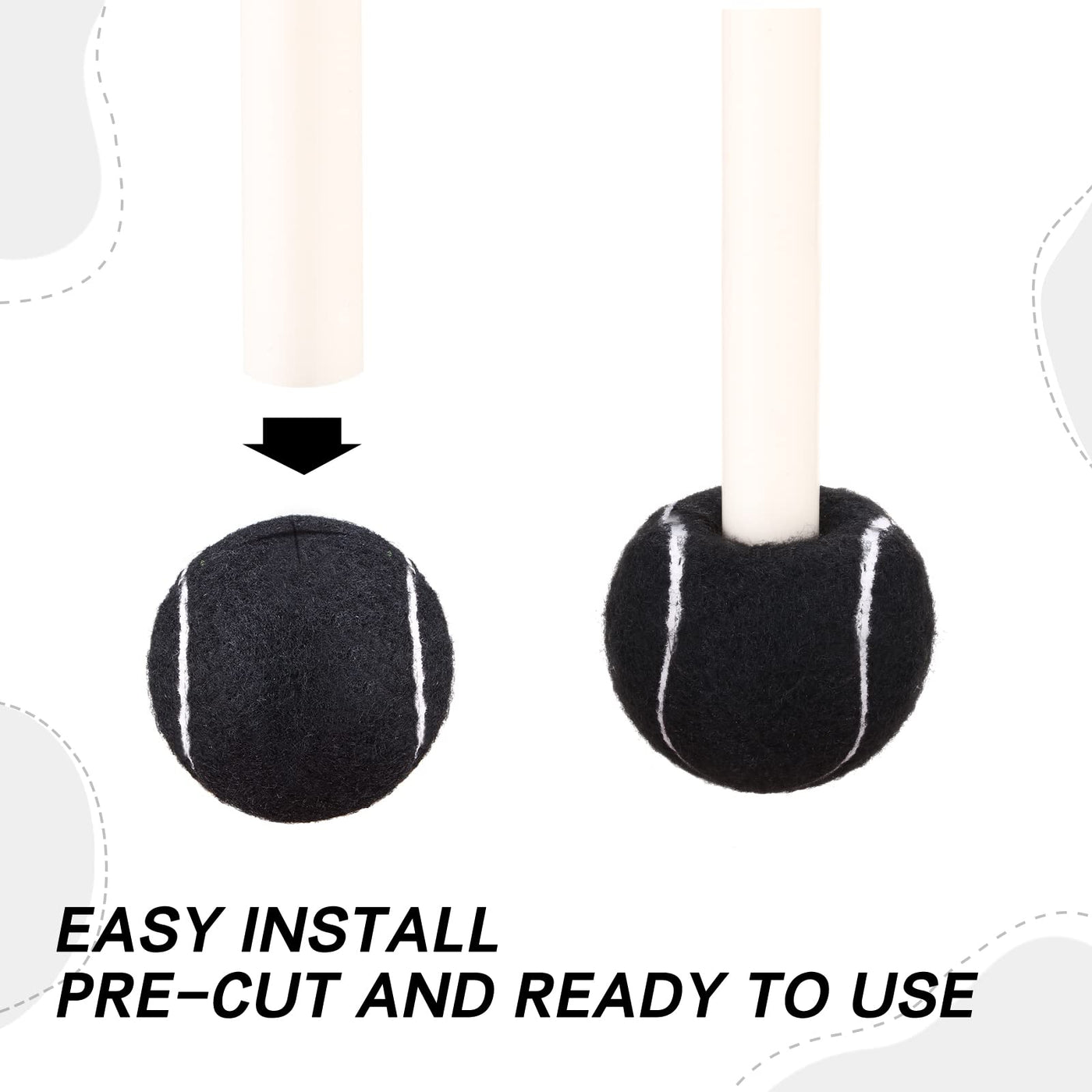 Features: You can give these black tennis balls for chair legs to family, colleagues and friends, and they will be very happy to receive such practical and useful gifts. These furniture tennis balls are suitable for sliding in 1/8 inch tubes or most furniture legs, pre cut design, convenient to install or remove, will not scratch your floor. These pre cut tennis balls are made of rubber and soft felt, not easy to fray or deform, no odor smell, designed with black and white colors, can nicely fit furniture well. Specifications: Material: rubber, soft felt Main color: black Size: as the pictures shown Package includes: 16 x Tennis balls for chair legs Warm notes: Please allow slight deviation due to manual measurement. Please allow slight color differences due to different monitors.