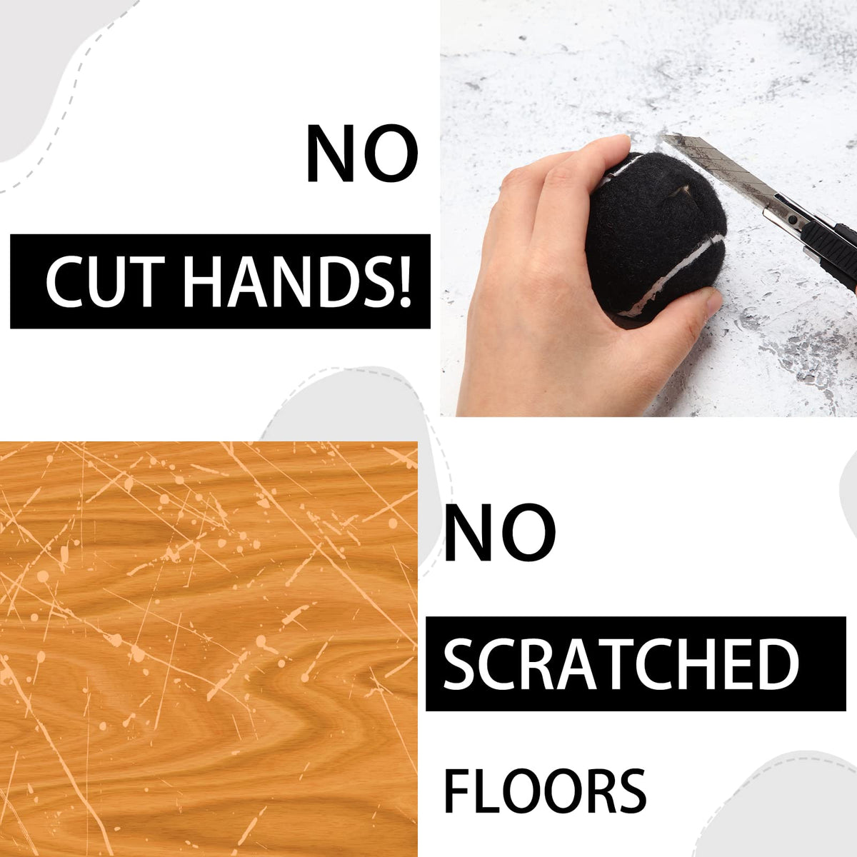 Q: How durable are the materials used in these tennis balls?A: The precut tennis balls are made from high-quality rubber with a soft felt exterior, ensuring durability and resistance to wear and tear. They are designed to maintain their shape over time, providing long-lasting protection for your furniture.