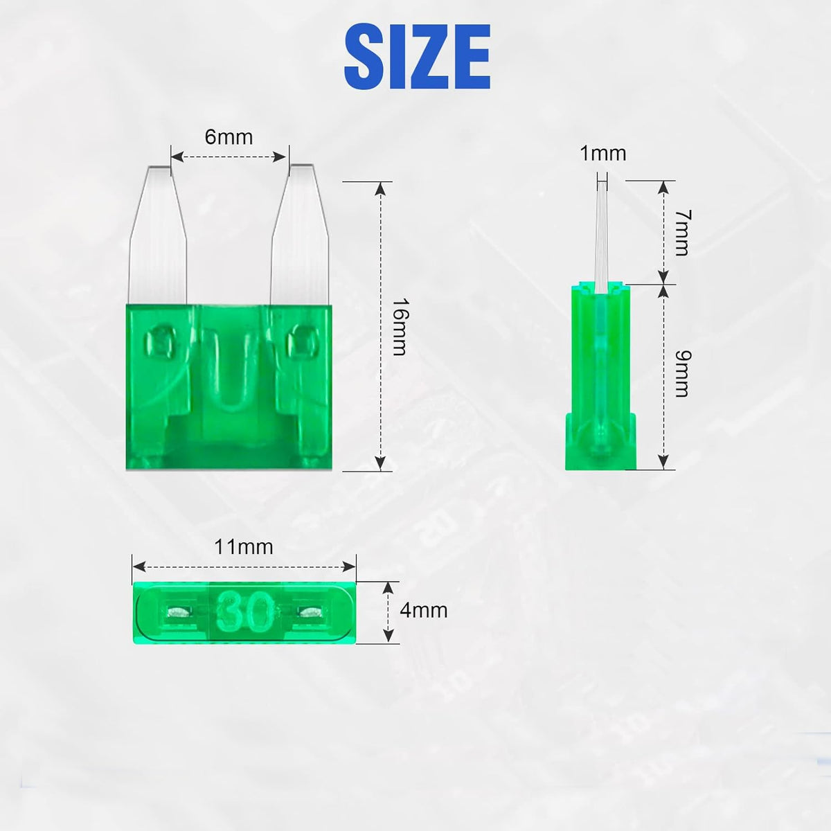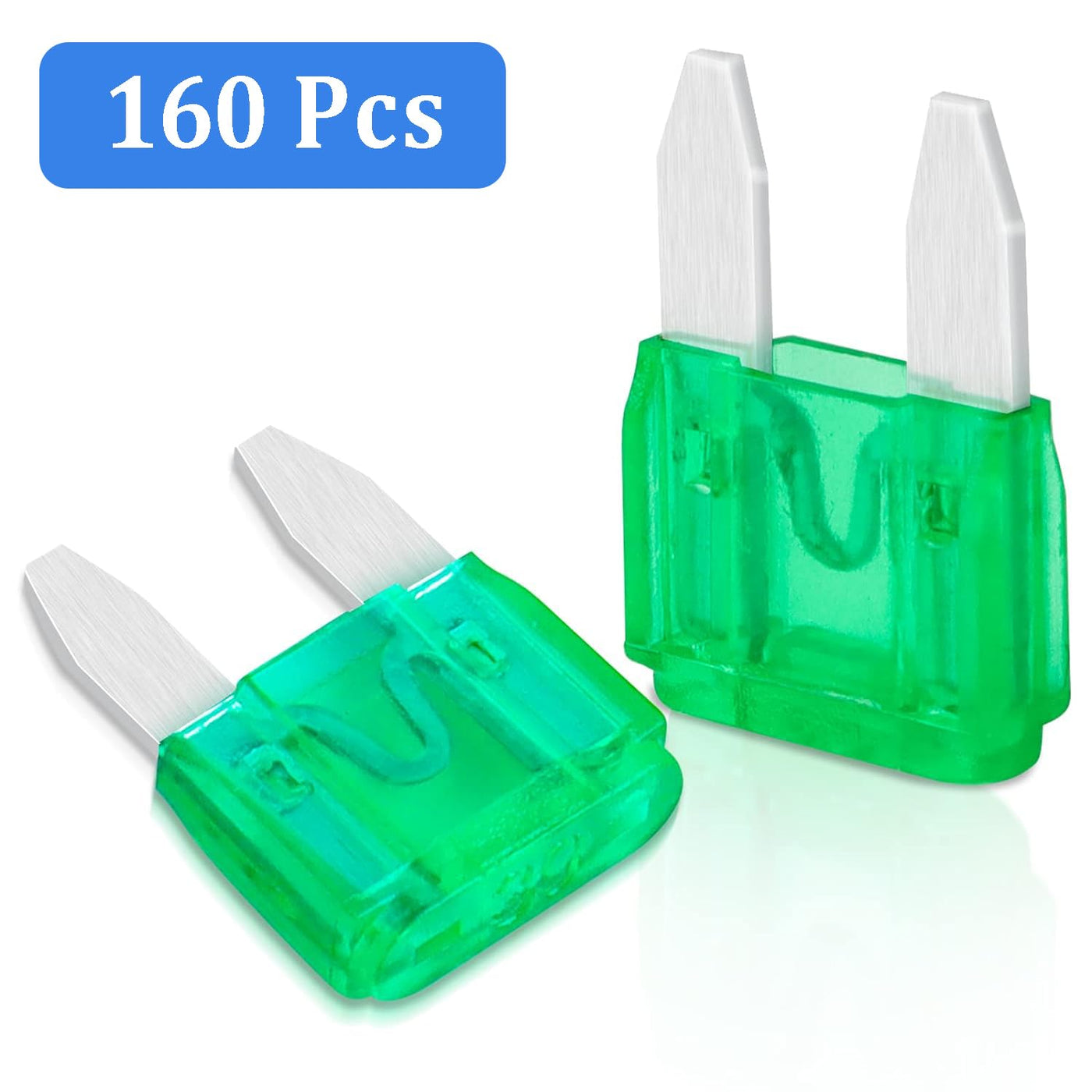 Q: How many fuses are included in the package, and what is their size?A: The package includes 160 pieces of 30A mini fuses, which are compact in size, measuring 1.0 inches in both length and width, making them easy to store and install.