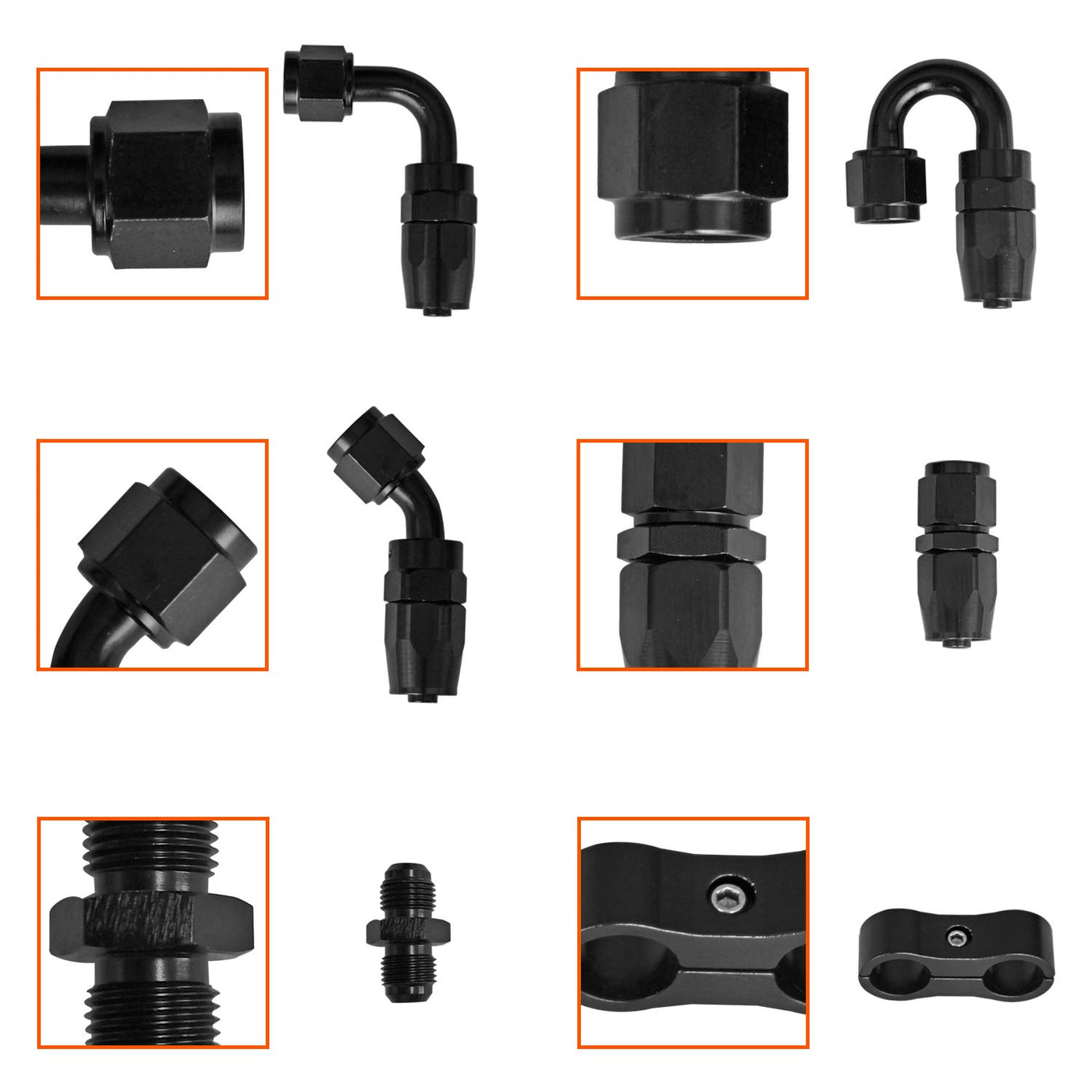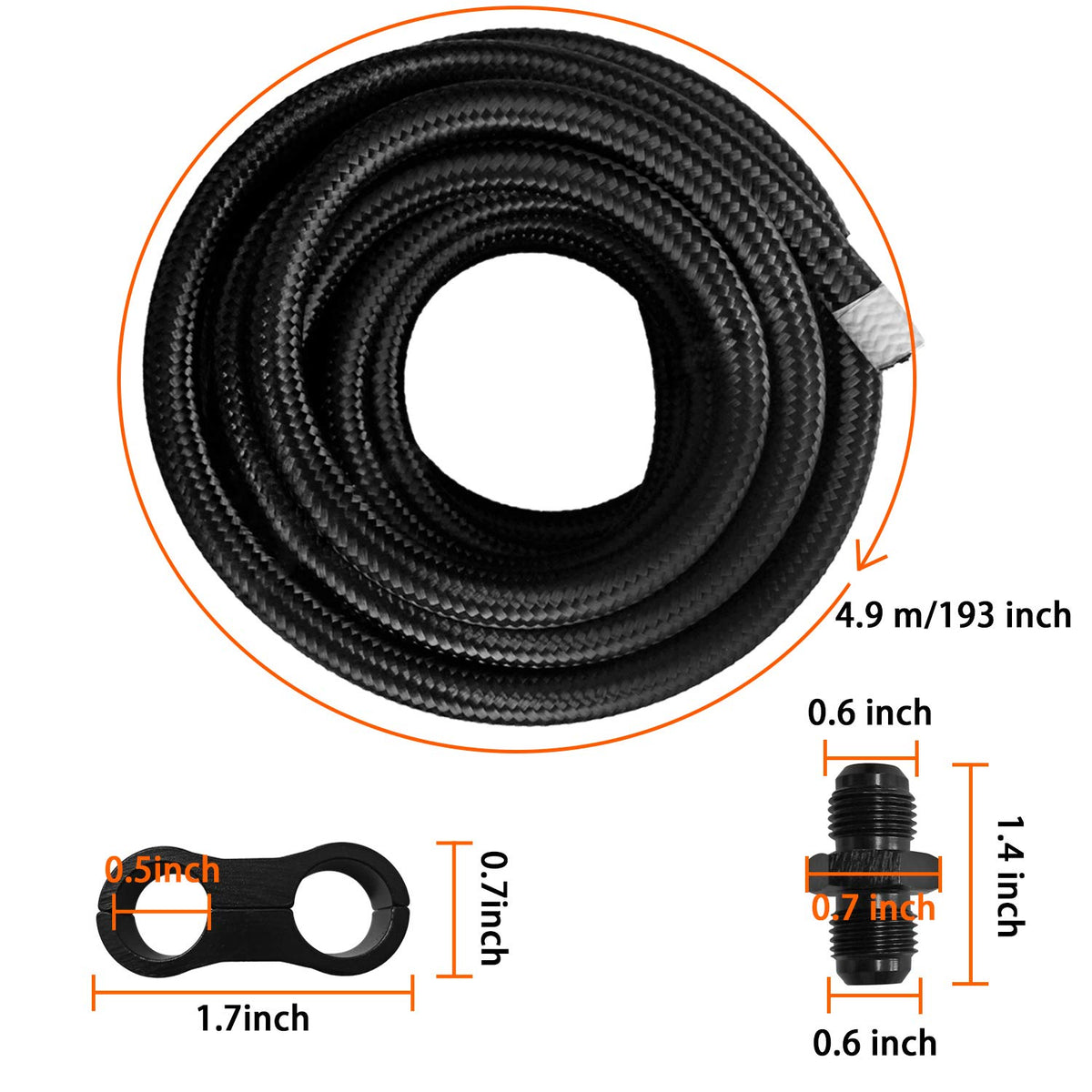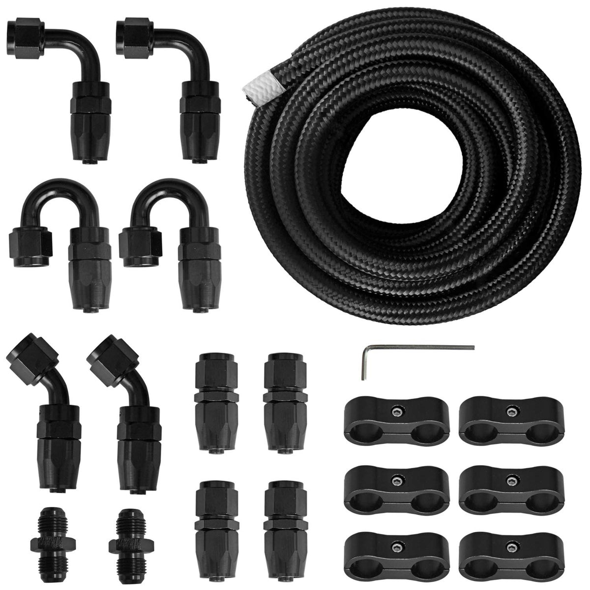 16Ft 6An Black Nylon Braided Fuel Oil Hose Fuel Line 10Pcs 6An Hose Fitting Kit 6Pcs 6An Hose Separator Clamp 2Pcs 6An To 6An Male Coupler Adapter Straight Fitting