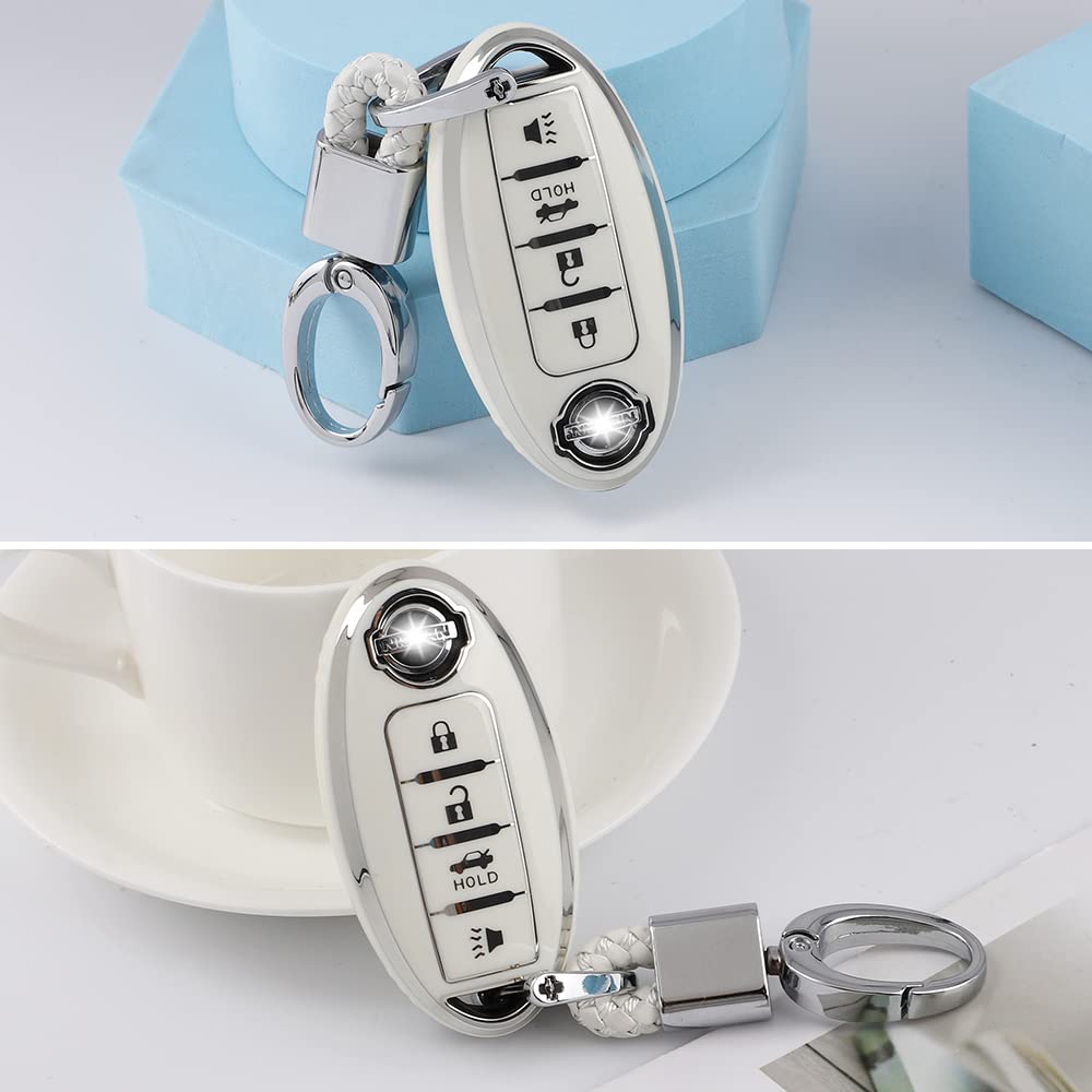 1797 For Nissan Key Fob Cover White Altima Rogue Sentra Pathfinder Maxima Titan Murano Accessories Car Key Chain Case Shell Protector 4 Button Tpu