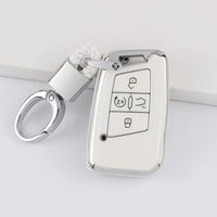 1797 For Volkswagen Vw Key Fob Cover Jetta Tiguan Arteon Atlas Taos Accessories Car Key Chain Case Shell Protector Women Men 4 Button White Silver Tpu