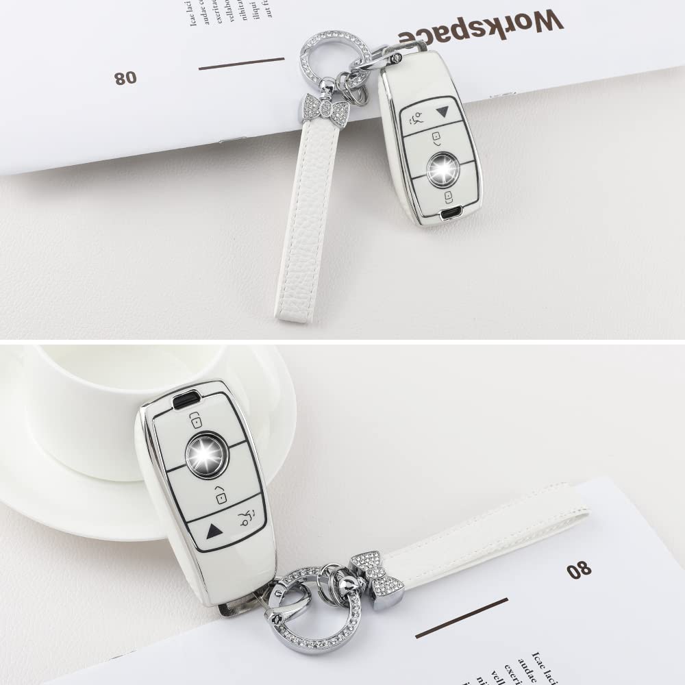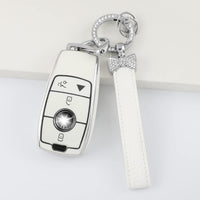 1797 Key Fob Cover For Mercedes Benz A C E G Cla Cls Gla Sl Class Accessories Bling Keychain Car Smart Remote Case Shell Girly Cute 4 Button White Silver Tpu