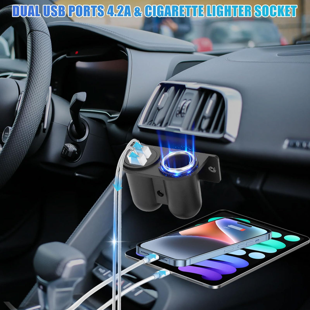 1PCS Dual USB Outlet Cigarette Lighter Socket Splitter with Blade Fuse, 12V 4.2A Car Charger Power Adapter Replacement Waterproo
